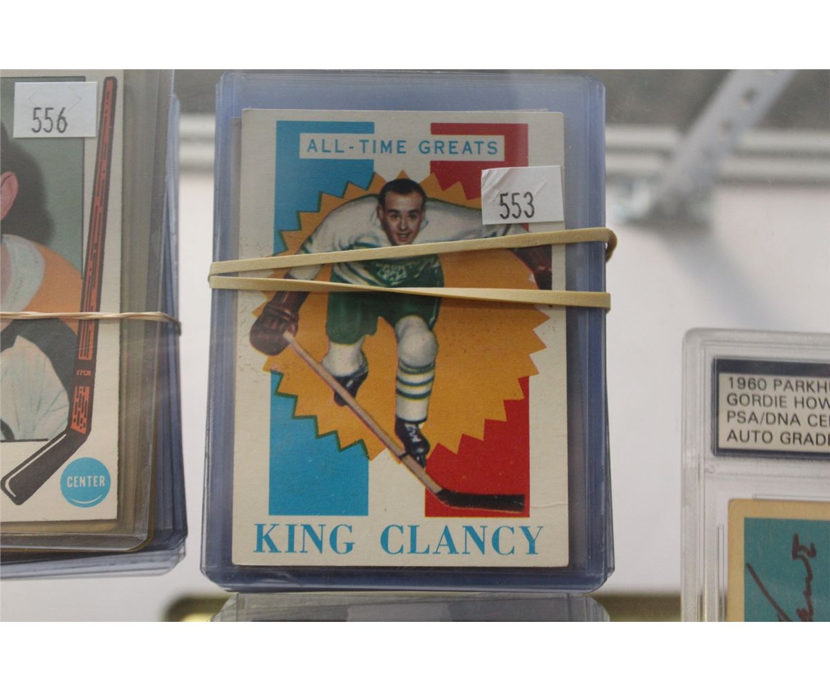 LOT OF 1960-61 TOPPS ALL-TIME GREATS INCL. #46 CYCLONE TAYLOR, #27 ART ROSS, #20 EDDIE SHORE, #3 JOE MALONE, #5 NELS STEWART, #8 CY DENNENY, #26 AUBREY CLAPPER, #32 CHARLIE GARDINER AND #47 KING CLANCY