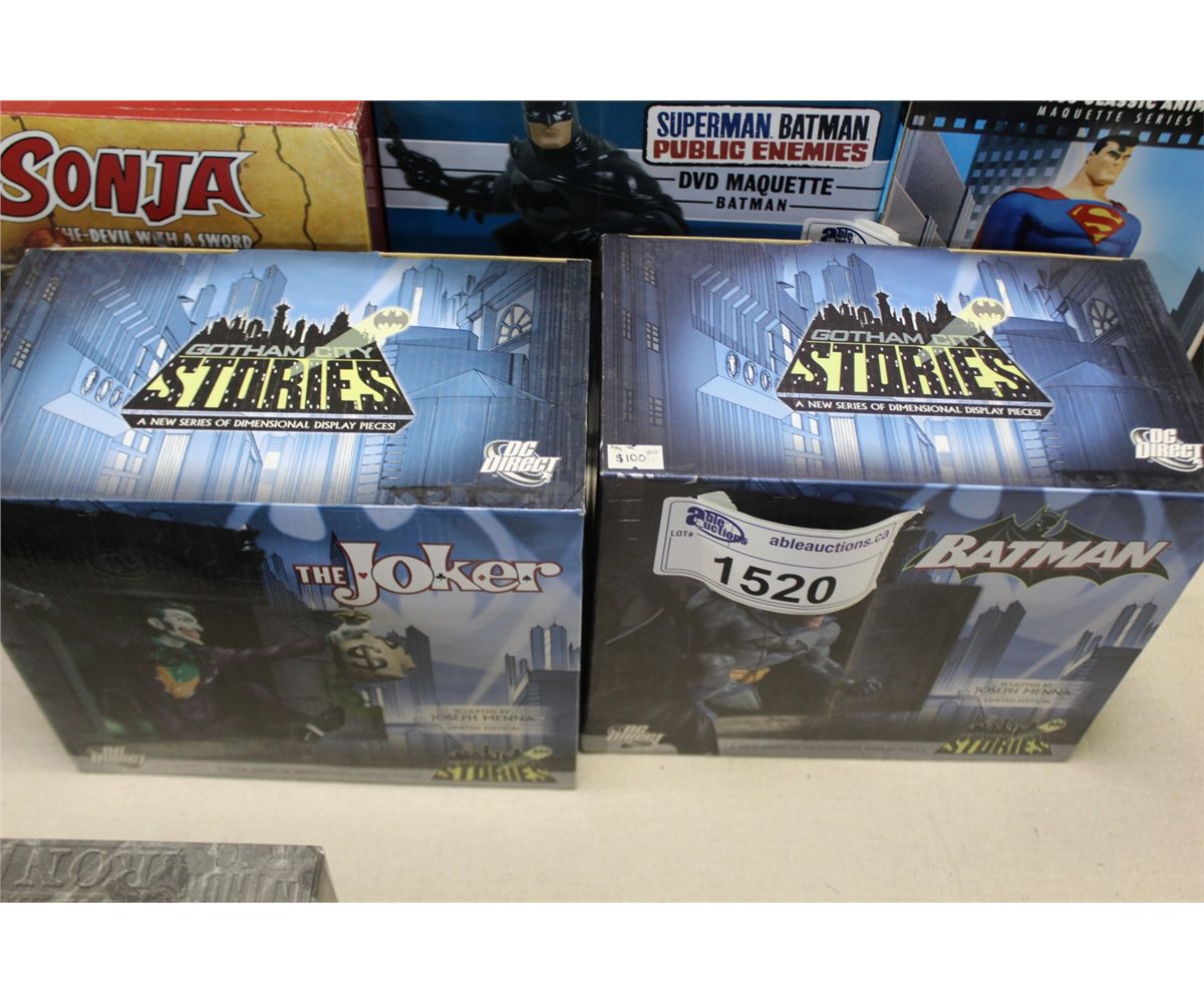 LOT OF 2 DC DIRECT GOTHAM CITY STORIES STATUES INC. BATMAN AND THE JOKER
