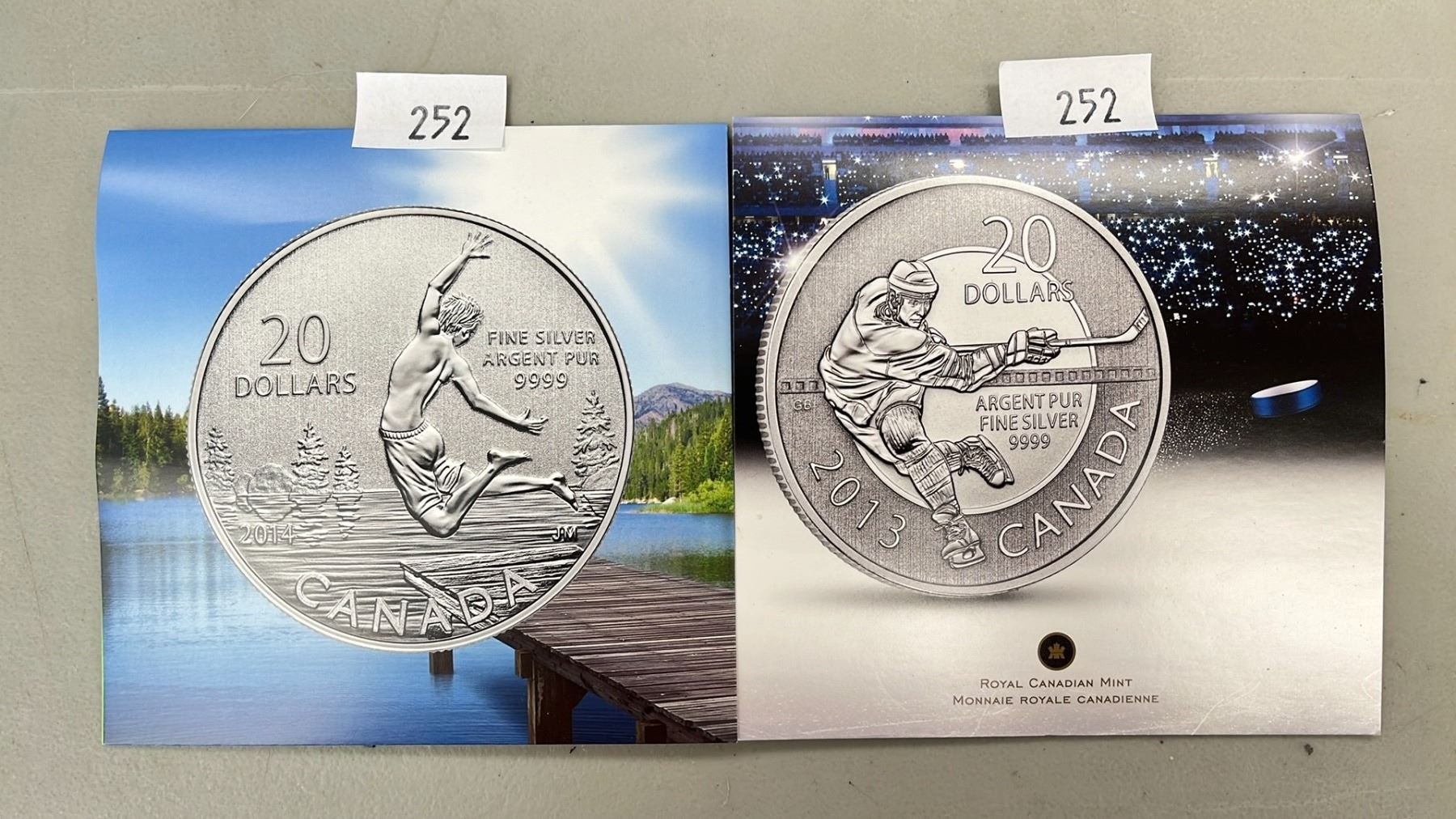 LOT OF 2 FINE SILVER ROYAL CANADIAN MINT 2013 & $2014 $20 COINS