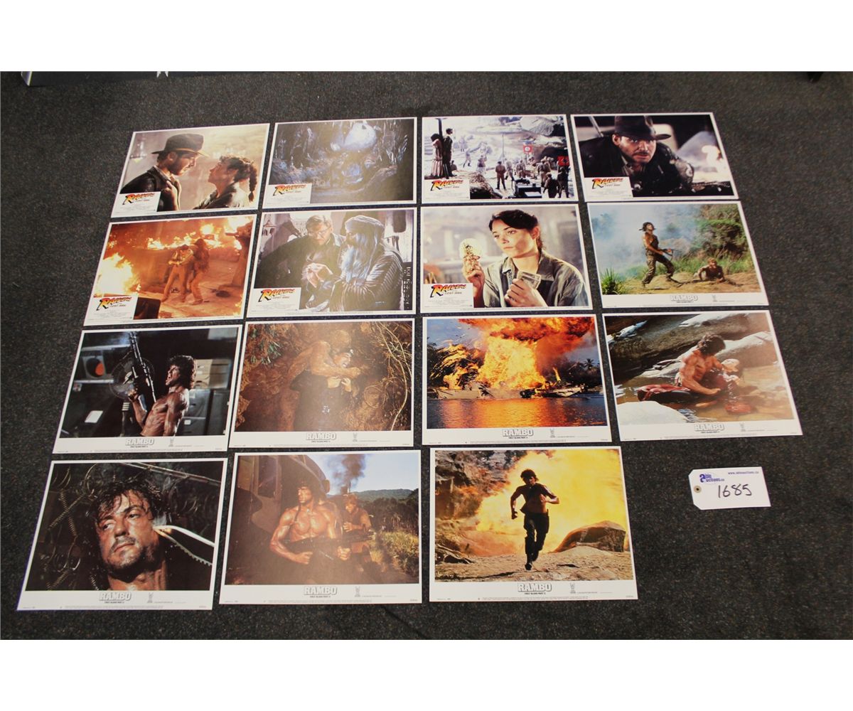 LOT OF 2 LOBBY CARD SETS: RAIDERS OF THE LOST ARK & RAMBO