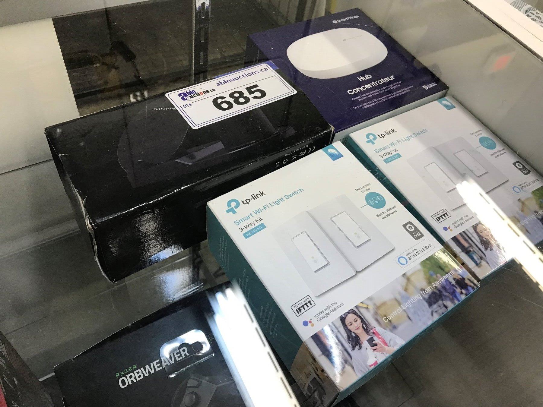 LOT OF 2 WIFI TP-LINK SMART LIGHT SWITCHES, ONE HUB CONTROLLER AND A FAST CHARGER