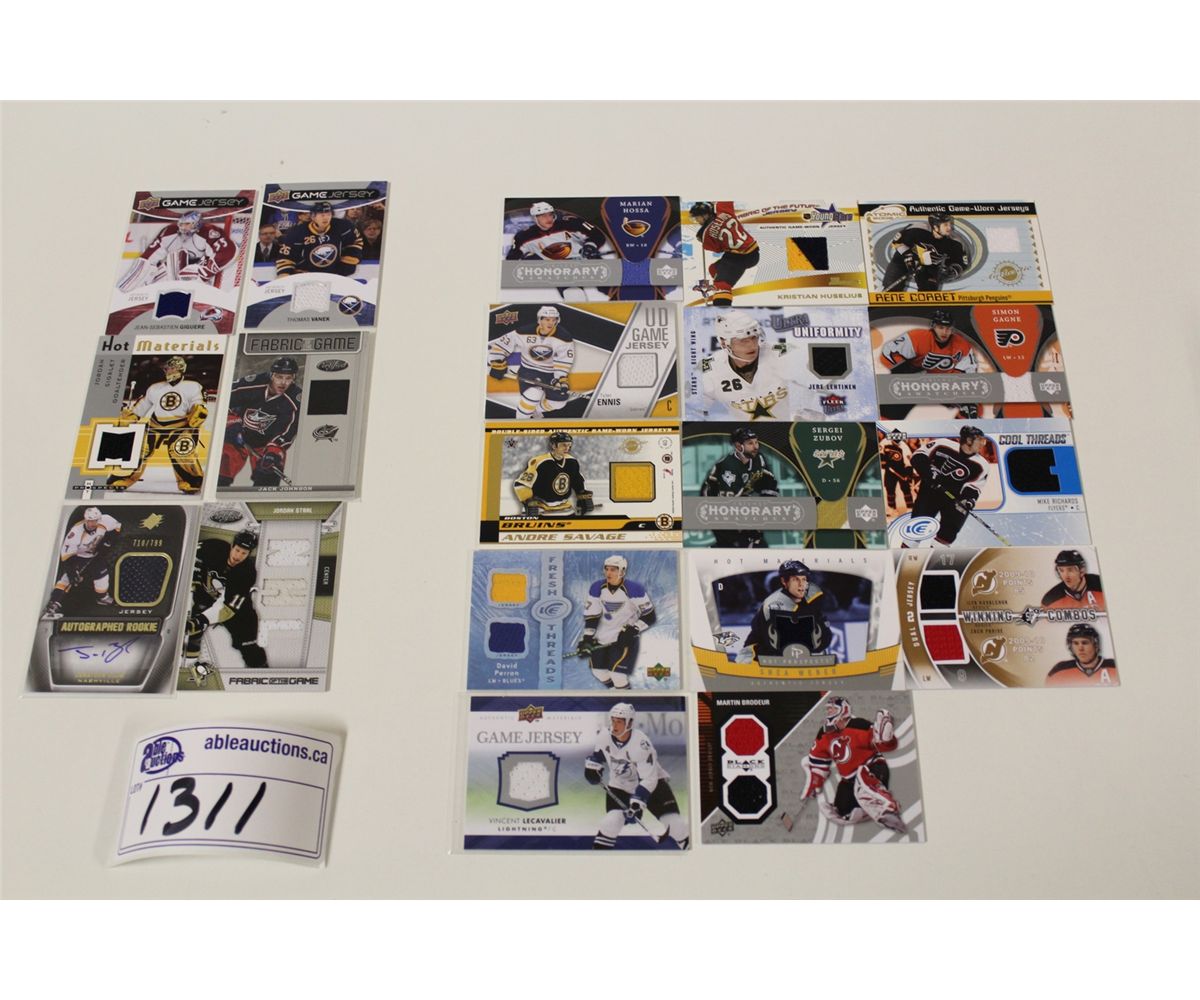 LOT OF 20 AUTHENTIC MEMORABILIA NHL CARDS (GAME USED JERSEY'S)