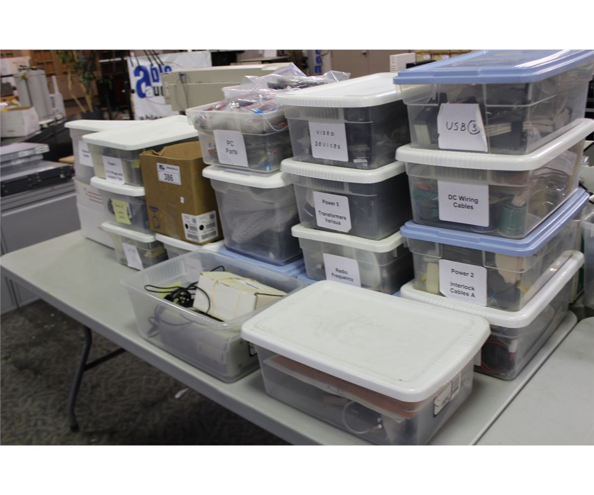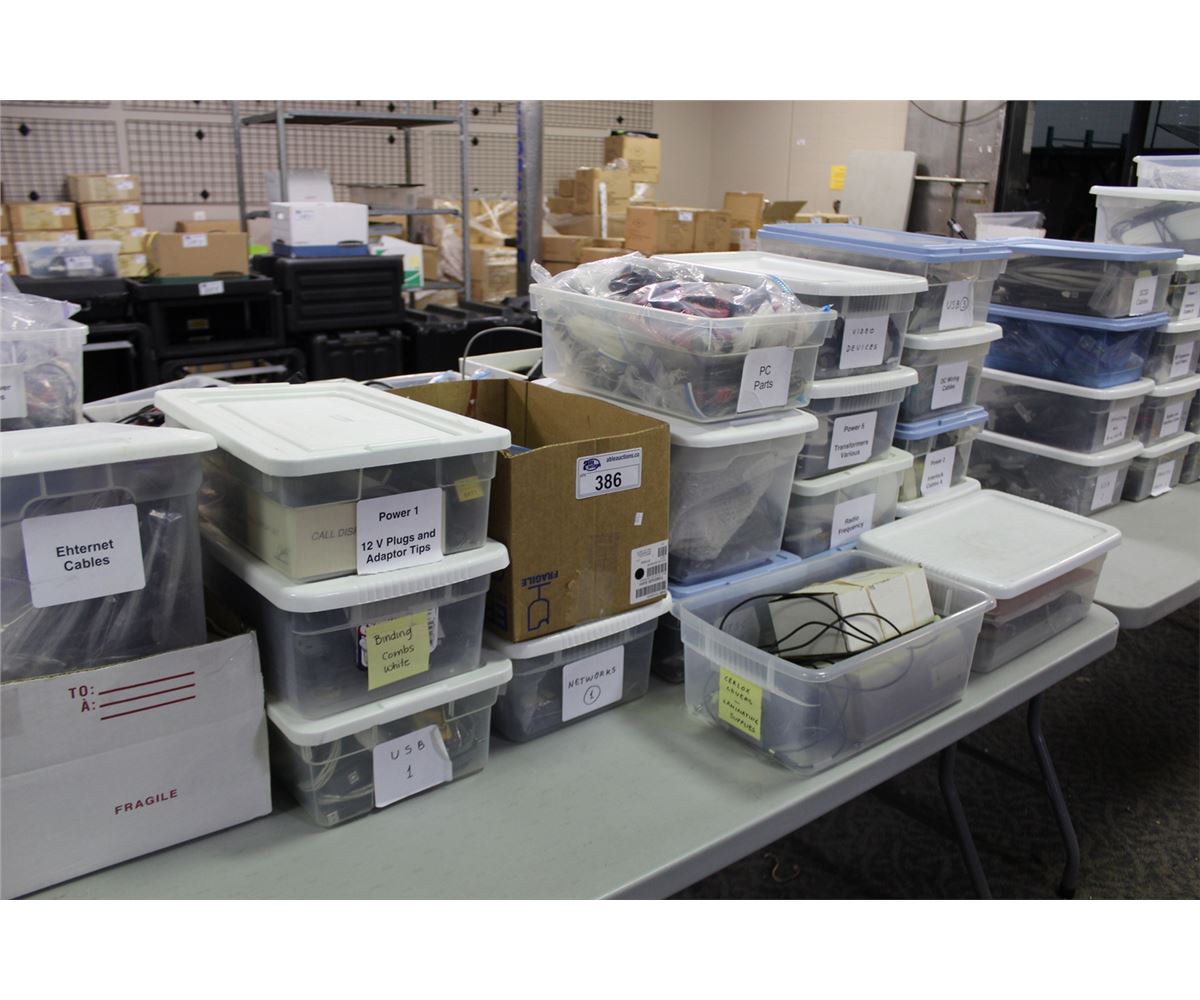 LOT OF 20 BOXES OF MISC. CABLES, ADAPTORS, AND VARIOUS OTHER TELECOMM AND NETWORK COMPONENTS