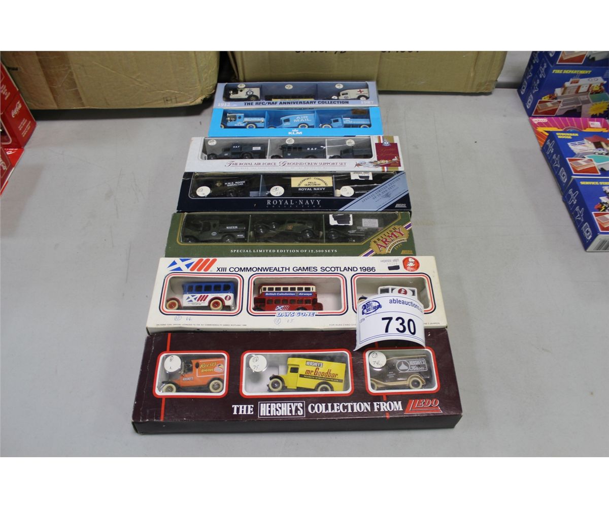 LOT OF 21 BRITISH AND NAVY, COMMONWEALTH GAMES AND MORE DIE CAST MODEL VEHICLES W/ ORIGINAL PACKAGING