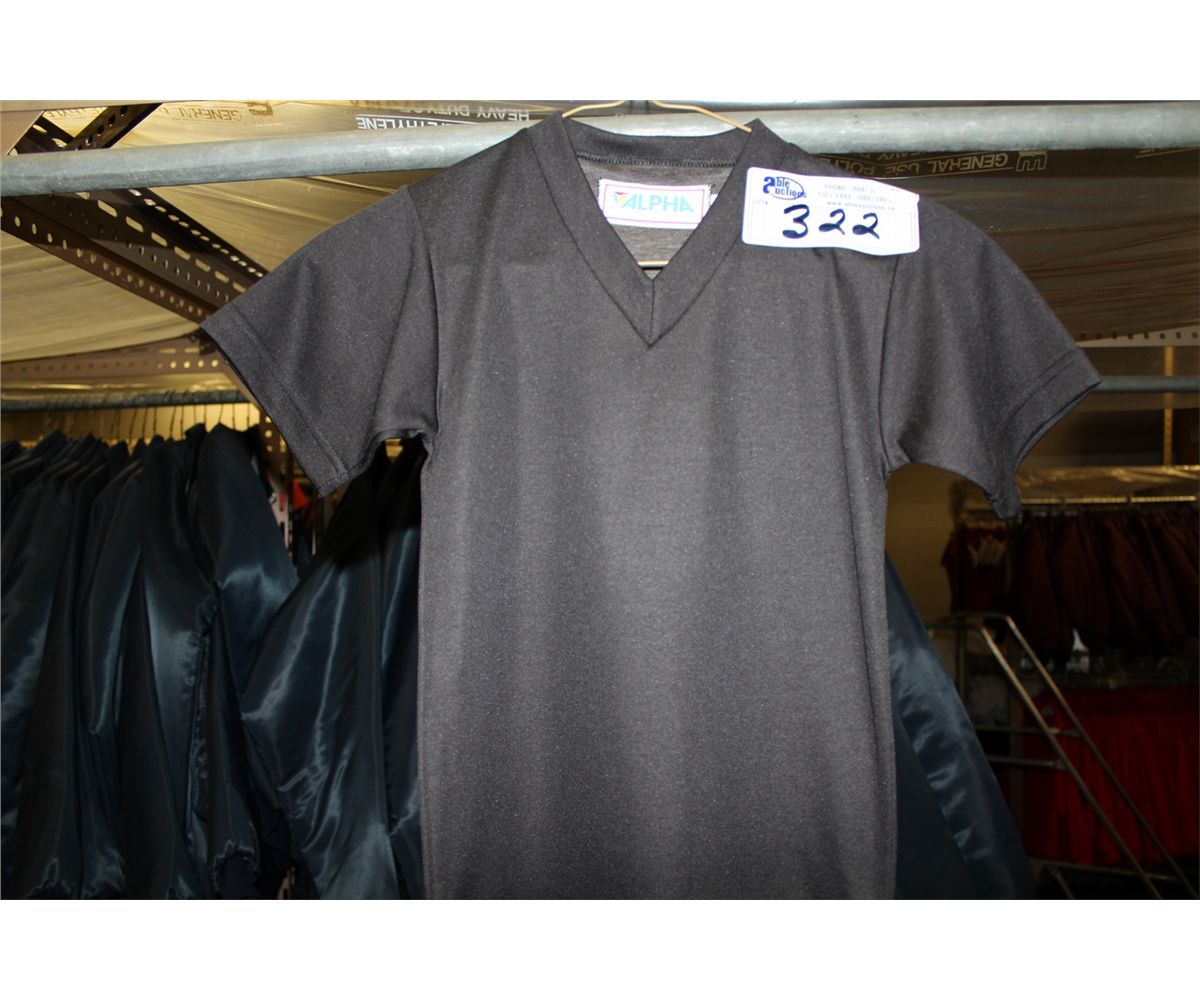 LOT OF 237 BLACK JUNIOR SOCCER JERSIES SOLD PER JERSEY, MUST TAKE ALL.