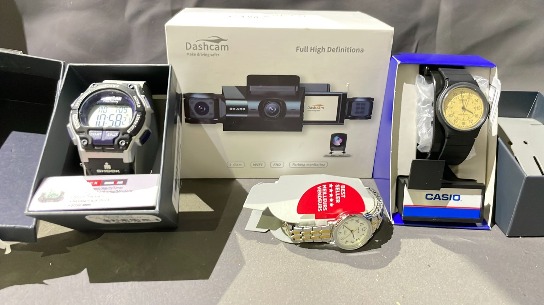 LOT OF 3 ASSORTED TIMEX & CASIO WATCHES & DASHCAM
