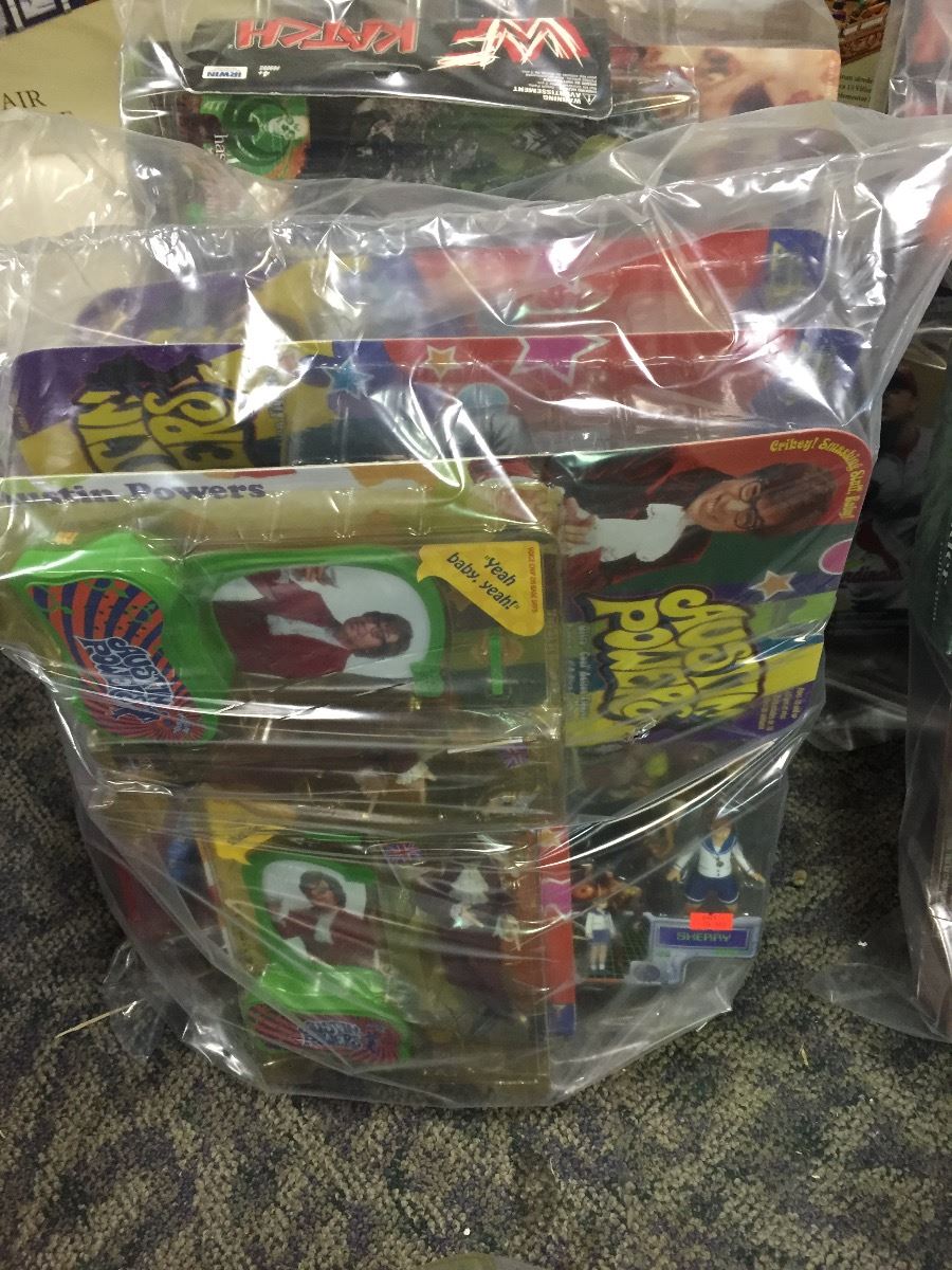 LOT OF 3 BAGS CONTAINING NEW IN THE BOX TOYS AND ACTION FIGURES