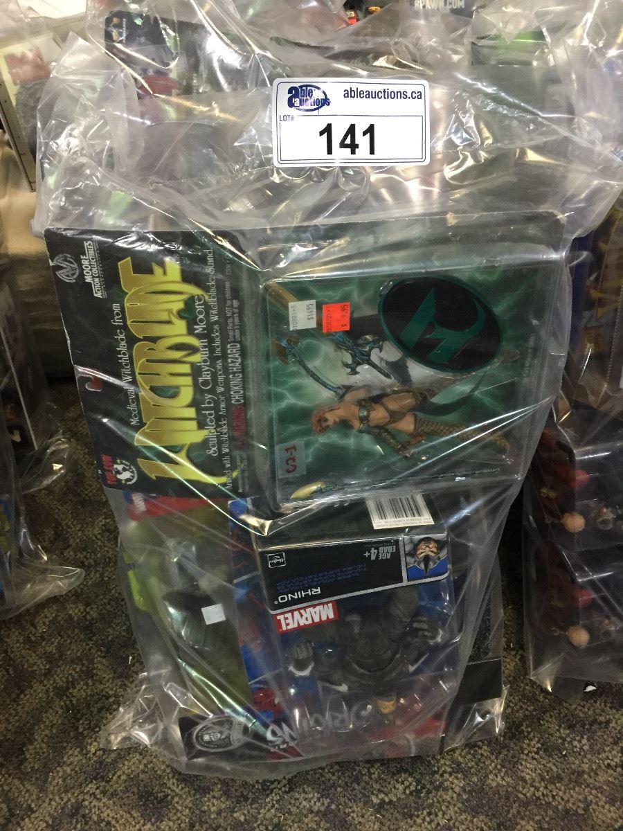LOT OF 3 BAGS CONTAINING NEW IN THE BOX TOYS AND ACTION FIGURES