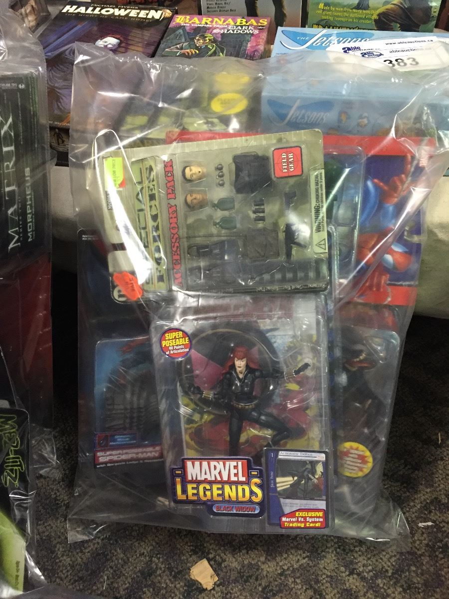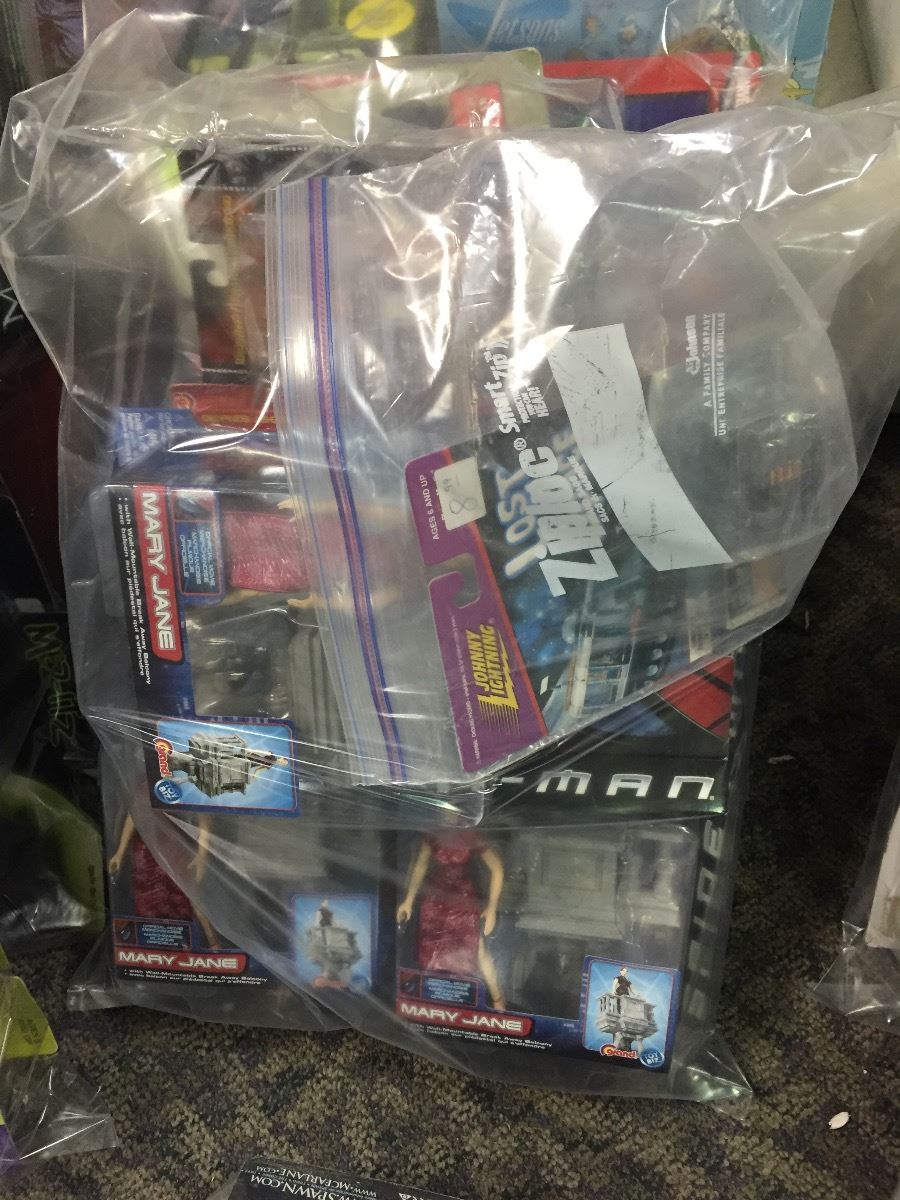 LOT OF 3 BAGS CONTAINING NEW IN THE BOX TOYS AND ACTION FIGURES