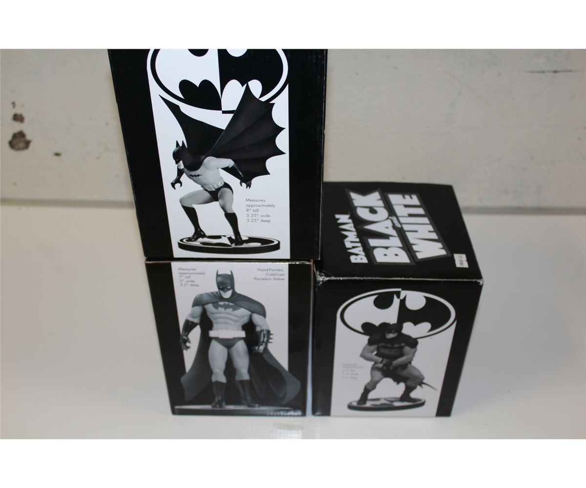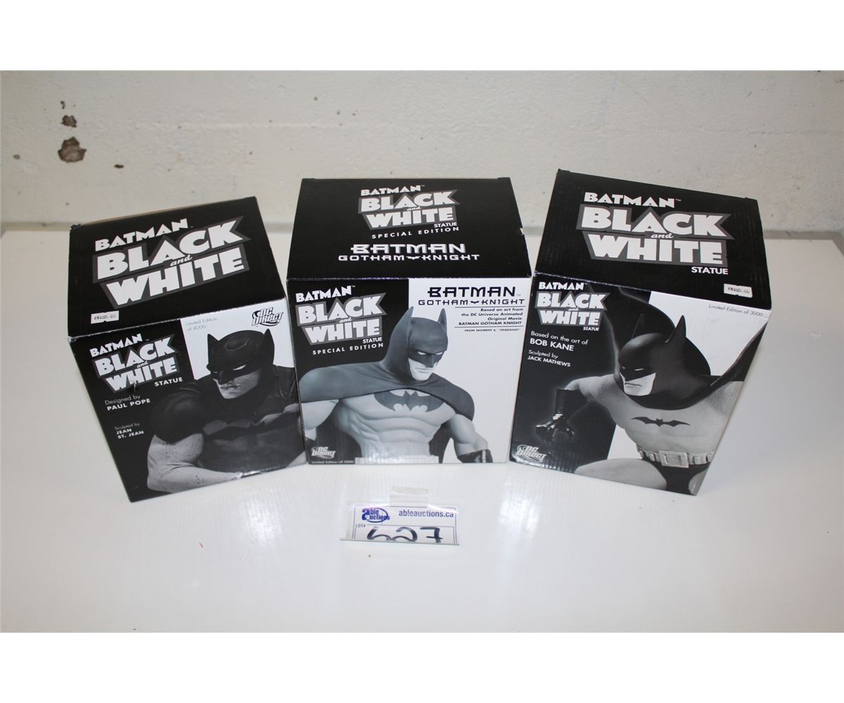 LOT OF 3 BATMAN BLACK AND WHITE STATUES NEW IN BOX