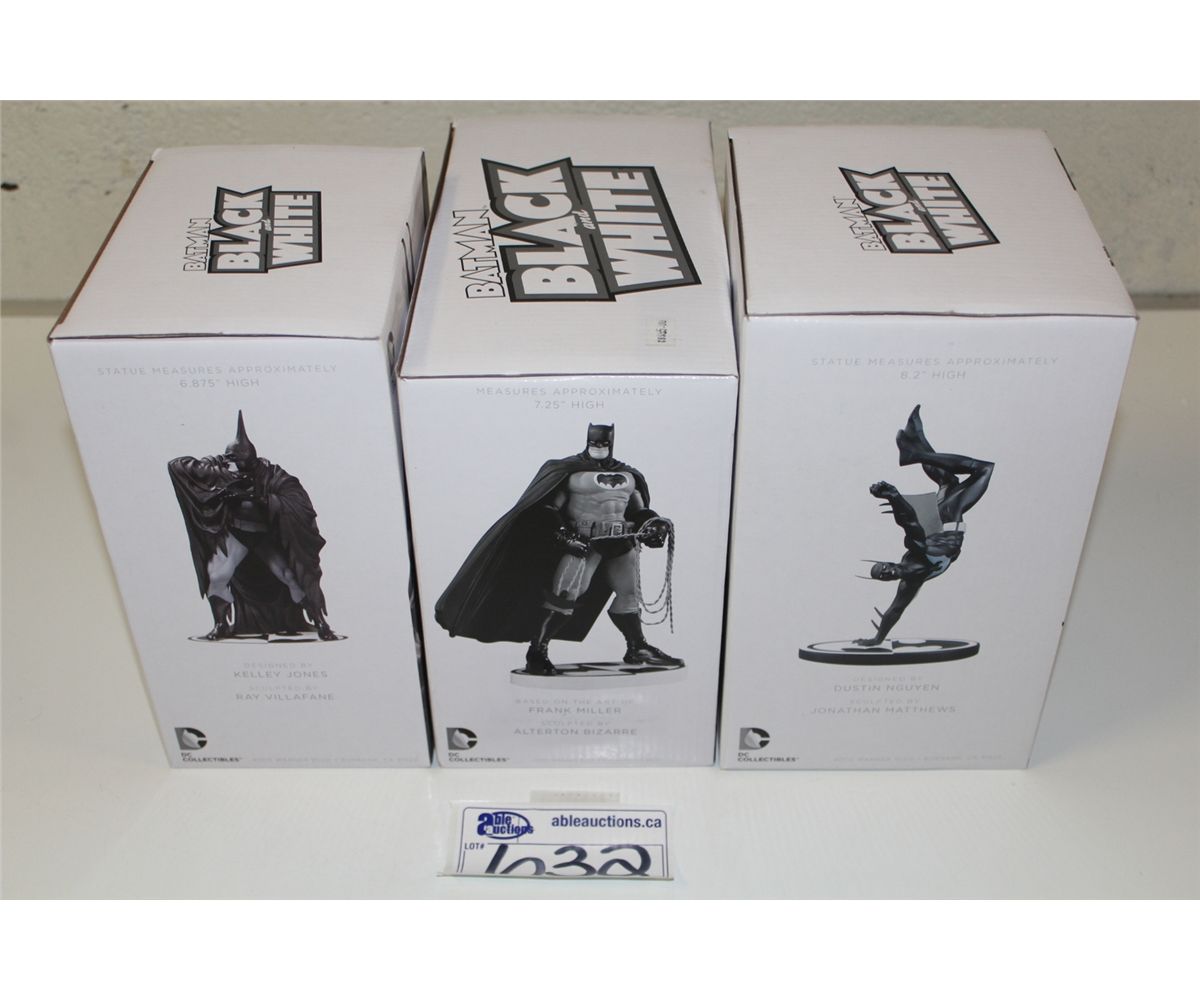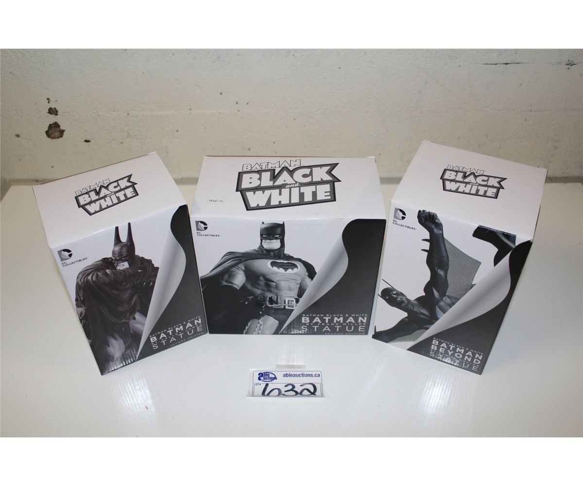 LOT OF 3 BATMAN BLACK AND WHITE STATUES NEW IN BOX