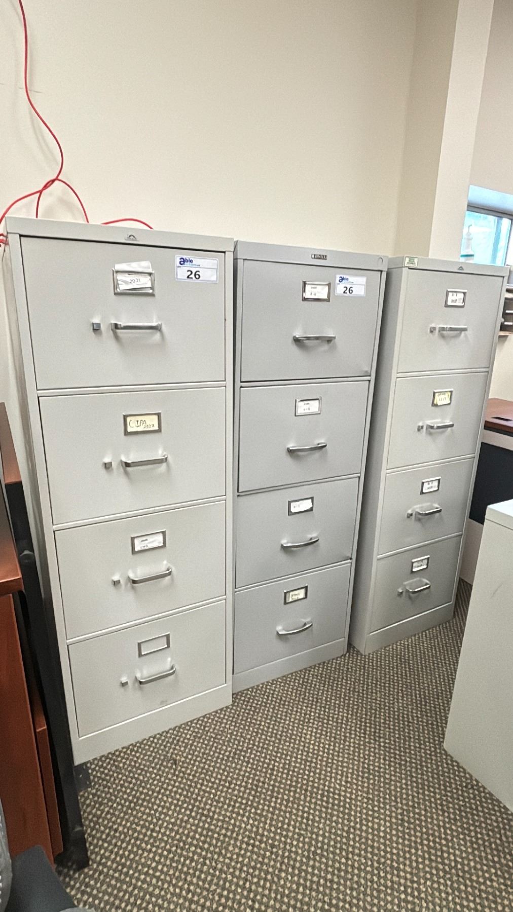 LOT OF 3 BEIGE 4 DRW. LEGAL VERTICAL FILE CABINETS