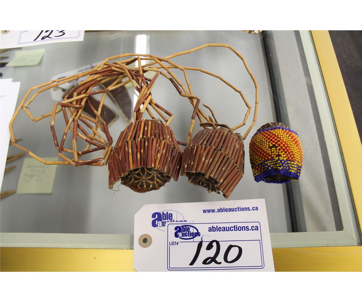 LOT OF 3 BUSHMEN TORTOISE SHELLS, ONE BEADED WITH MEDICINE