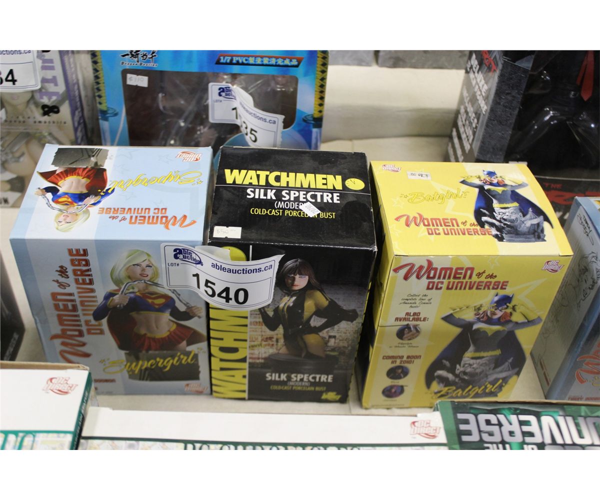 LOT OF 3 DC DIRECT FEMALE ACTION FIGURES INC. SILK SPECTRE, BATGIRL AND SUPERGIRL