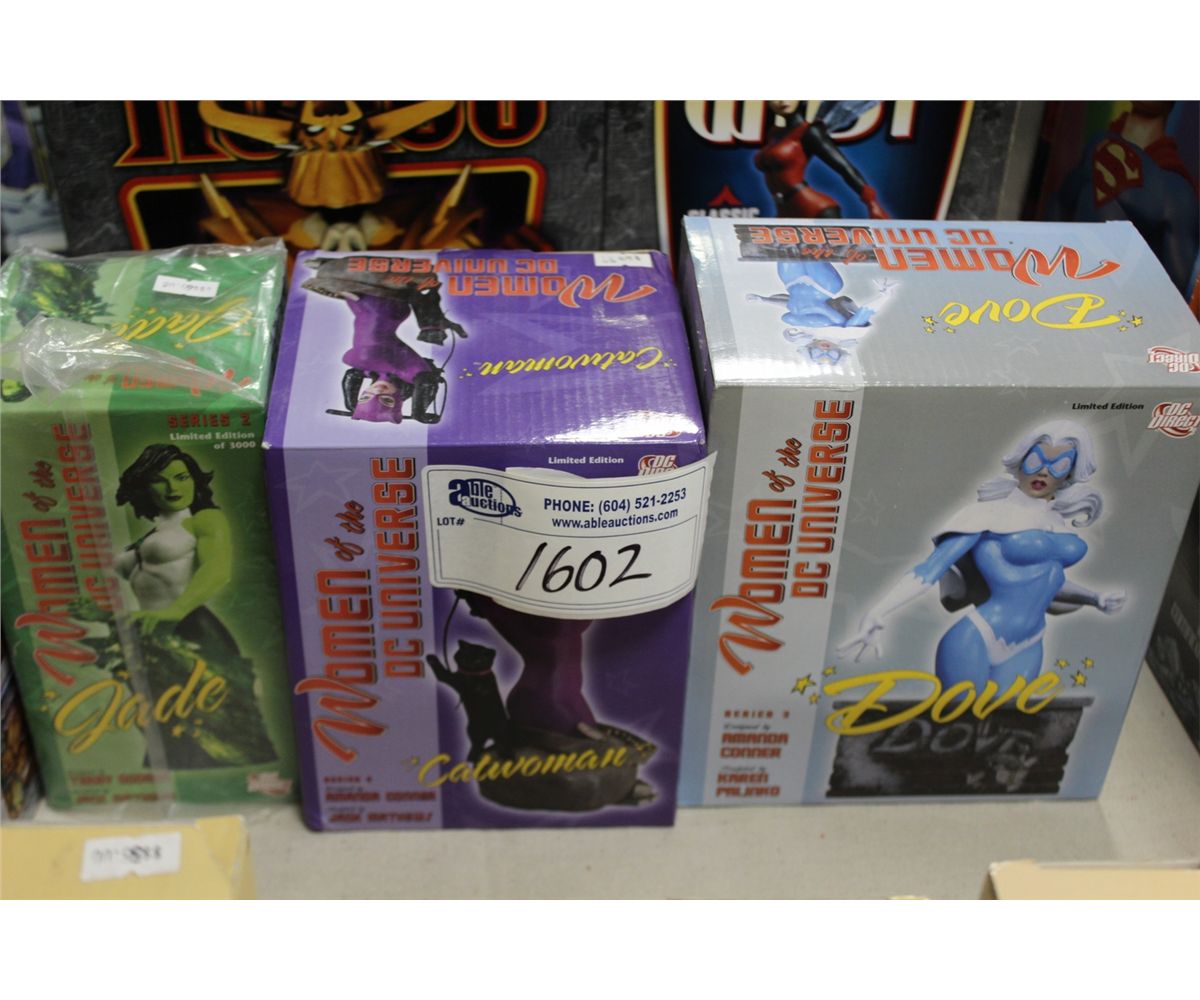 LOT OF 3 DC DIRECT LIMITED EDITION STATUES INC. JADE, CATWOMAN, AND DOVE