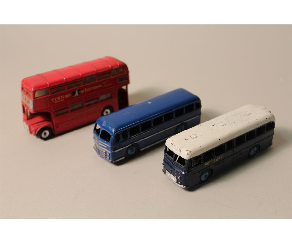 LOT OF 3 DINKY BUSES- NO. 289 ROUTEMASTER, NO. 283 AND DUPLE ROADMASTER