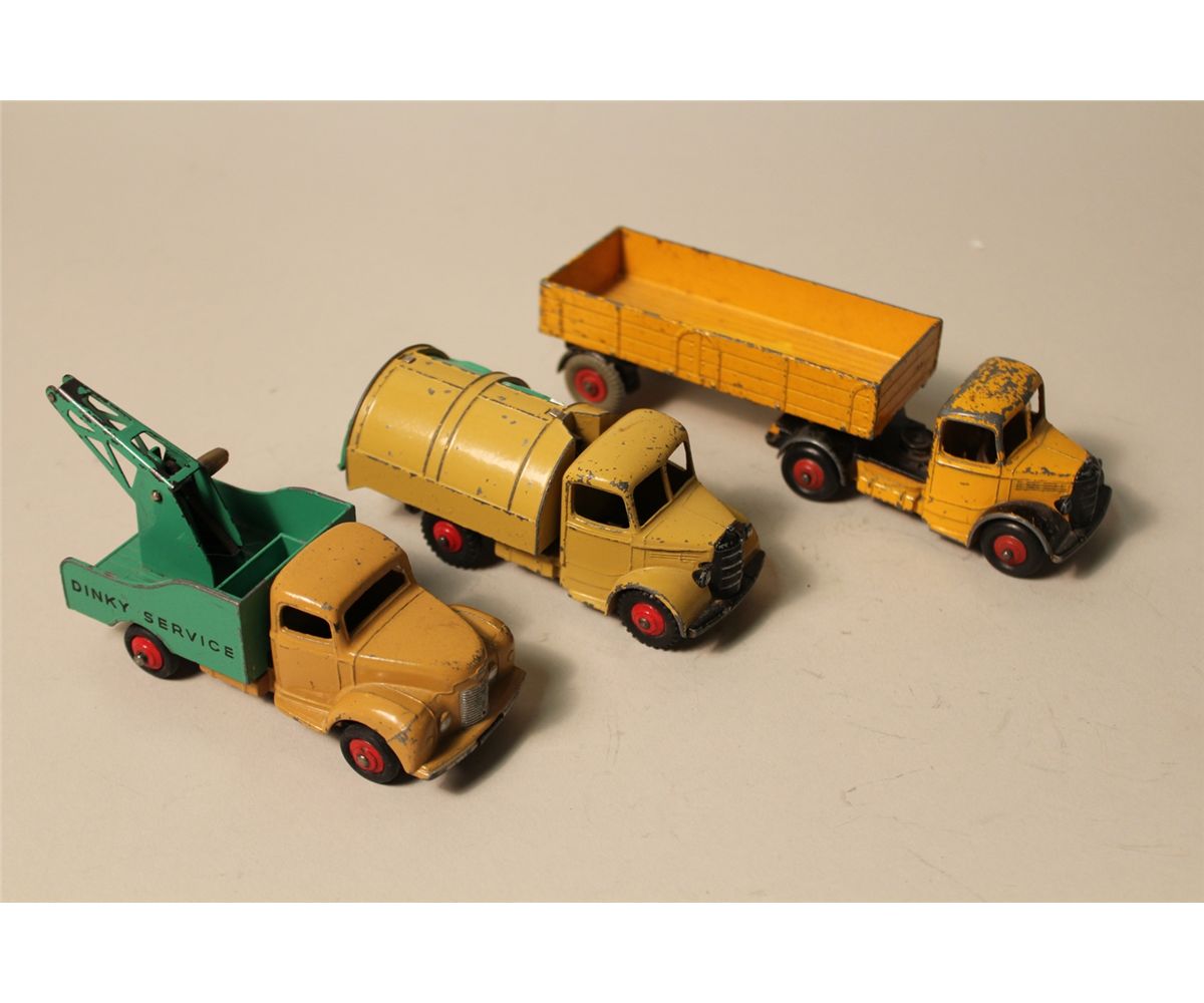 LOT OF 3 DINKY TRUCKS- NO. 252 BEDFORD REFUSE, NO. 409 BEDFORD ARTICULATED LORRY AND NO. 430 COMMER TOW TRUCK