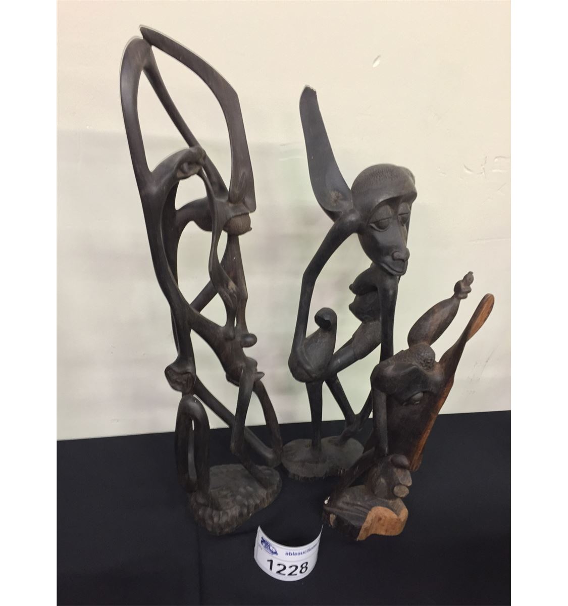 LOT OF 3 HAND CARVED AFRICAN SCULPTURES