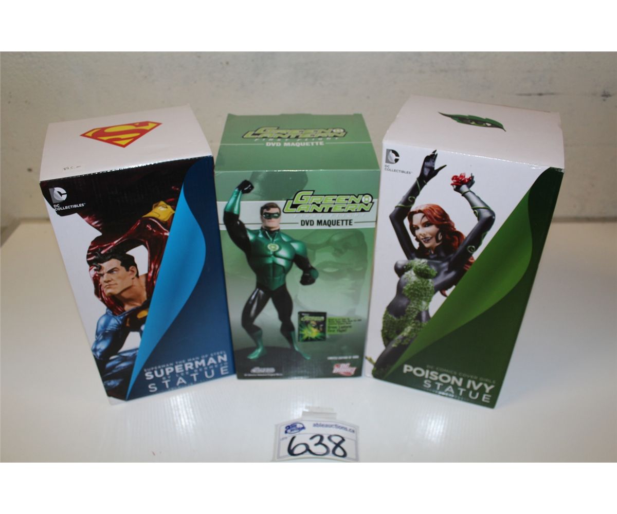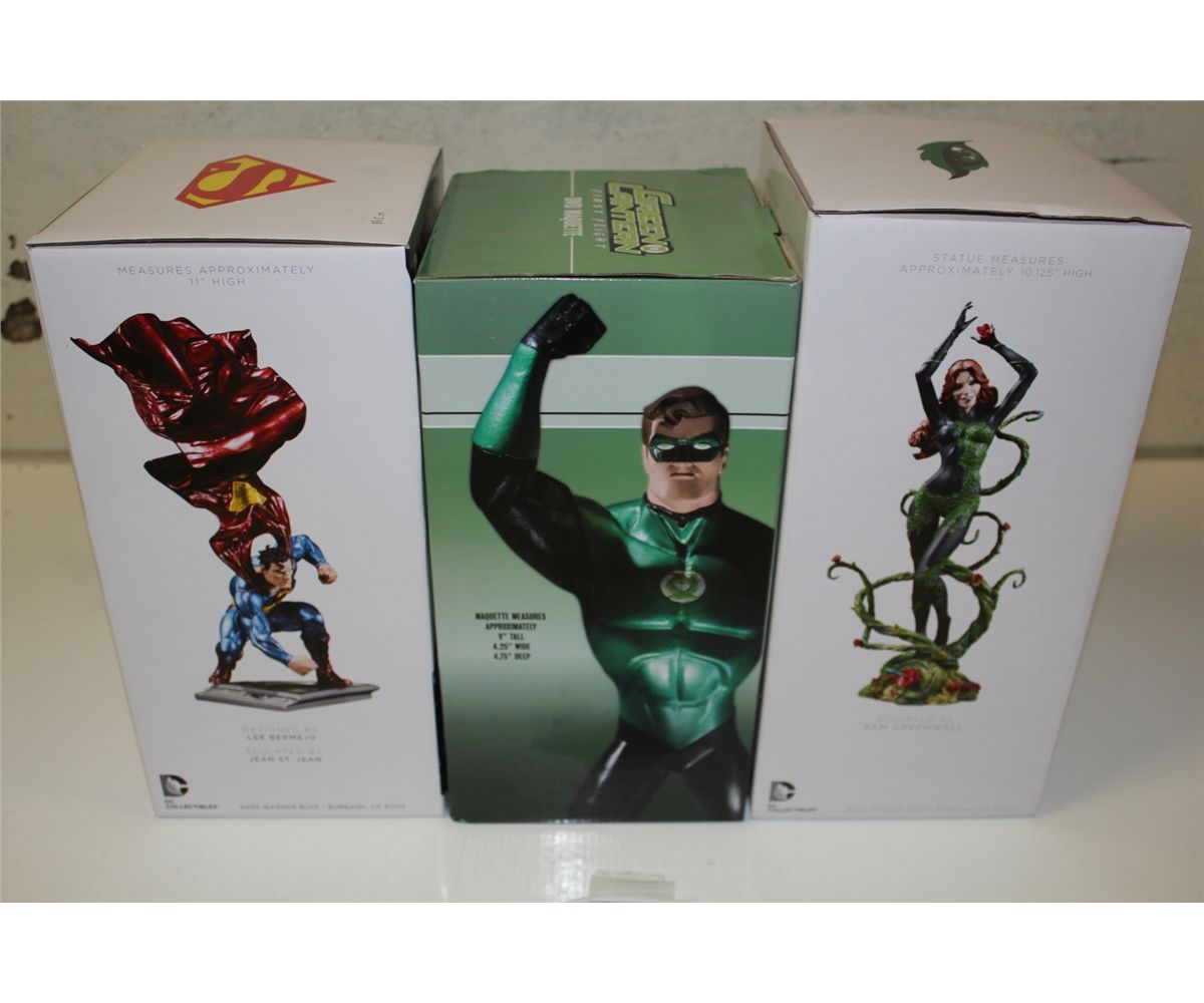 LOT OF 3 LIMITED EDITION DC SUPER HERO STATUES NEW IN BOX. INCLUDING, POISON IVY, SUPERMAN AND GREEN LANTERN FIRST FLIGHT.