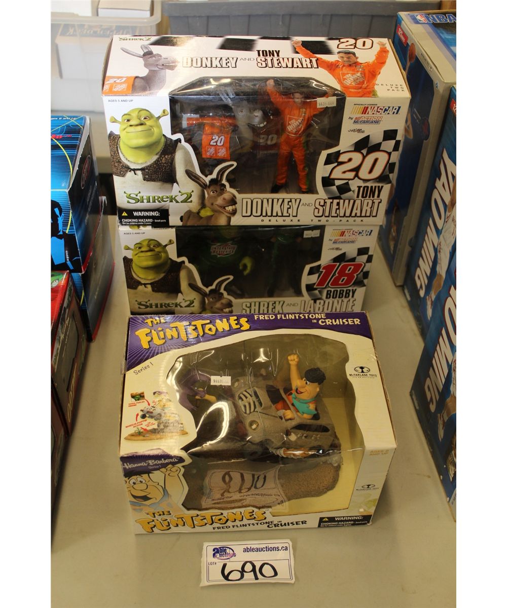 LOT OF 3 MACFARLANE TOYS- SHREK DELUXE TWO PACK AND THE FLINTSTONES