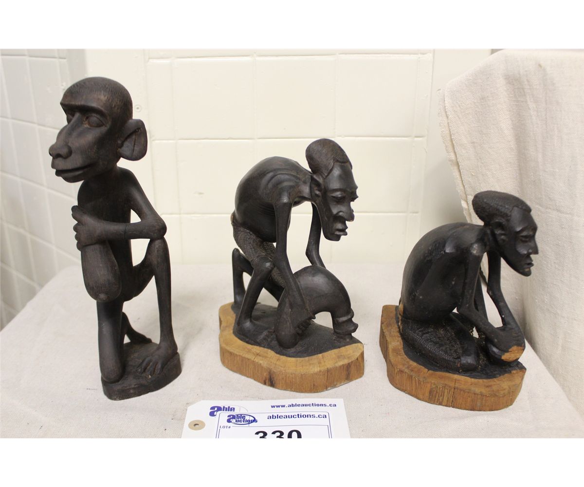 LOT OF 3 MAKONDE (TANZANIA) EBONY CARVINGS