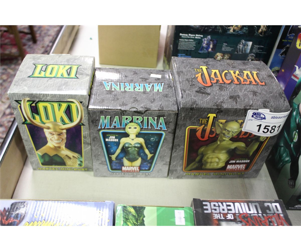 LOT OF 3 MARVEL BOWEN MINI-BUSTS INC. THE JACKAL, MARINA AND LOKI