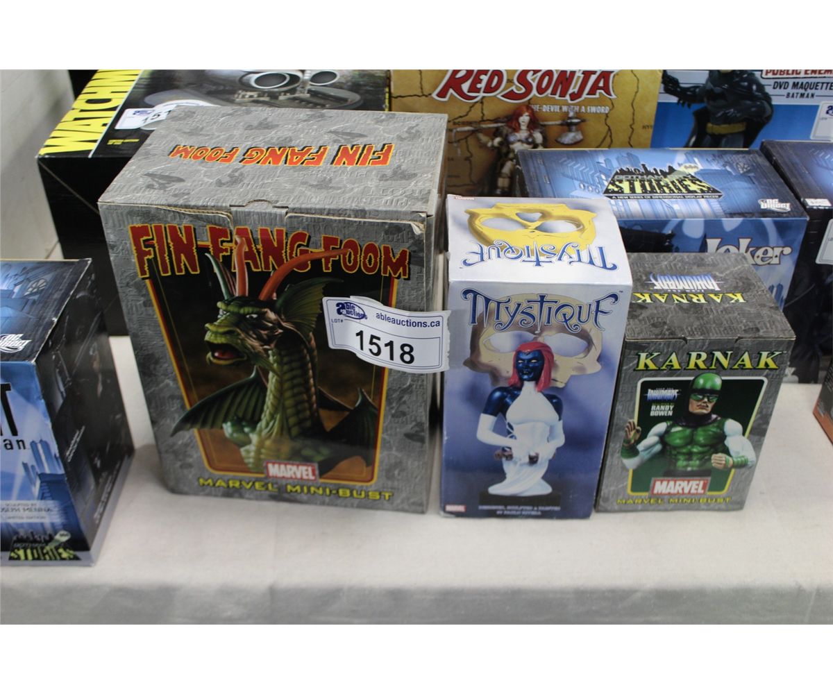 LOT OF 3 MARVEL MINI-BUSTS INC. FIN FANG FOOM, MYSTIQUE, AND KARNAK
