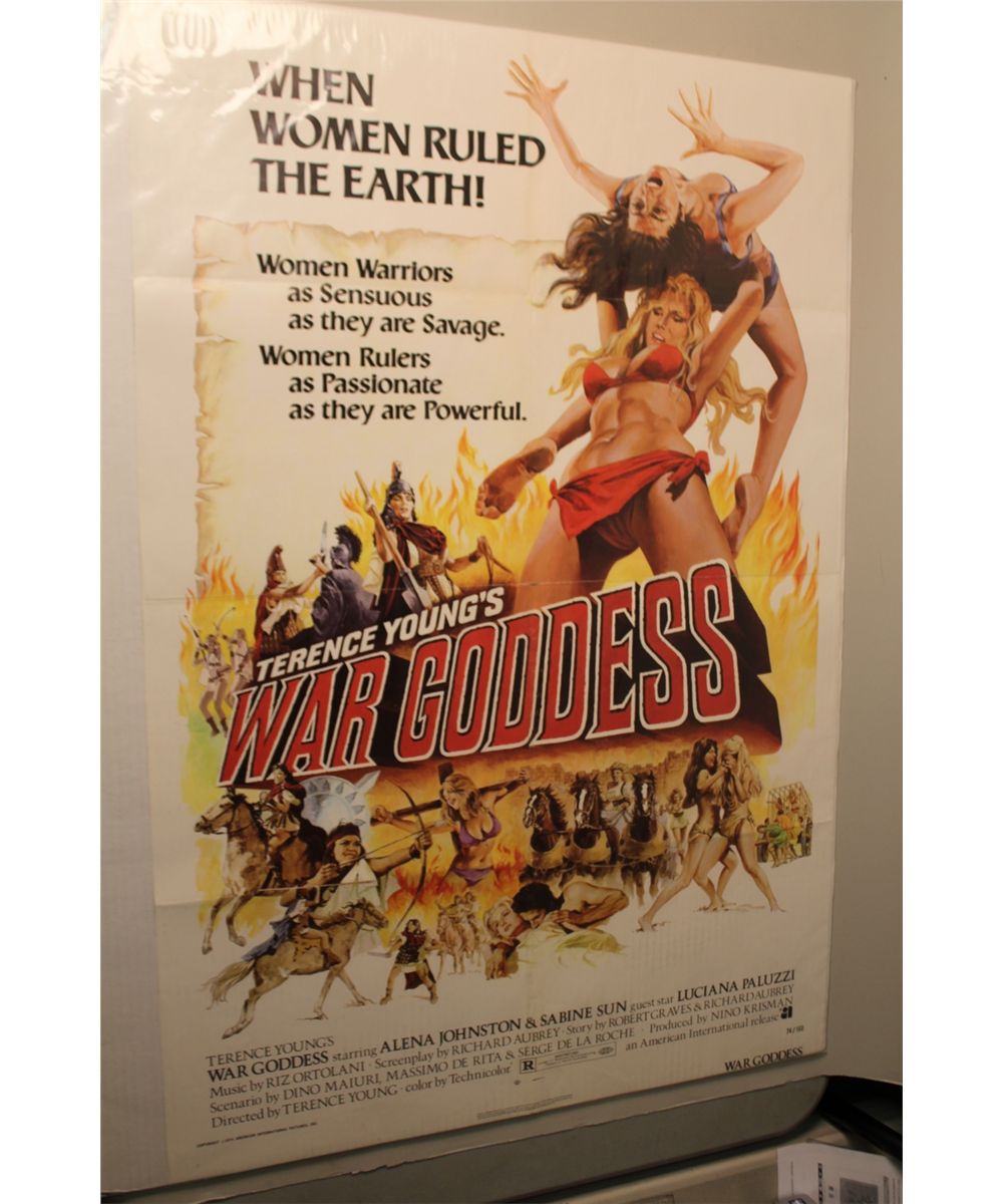LOT OF 3 MOVIE POSTERS WAR GODDESS ONE SHEET, OPERATION DAMES HALF SHEET & DR. FU MANCHU ITALIAN LOC