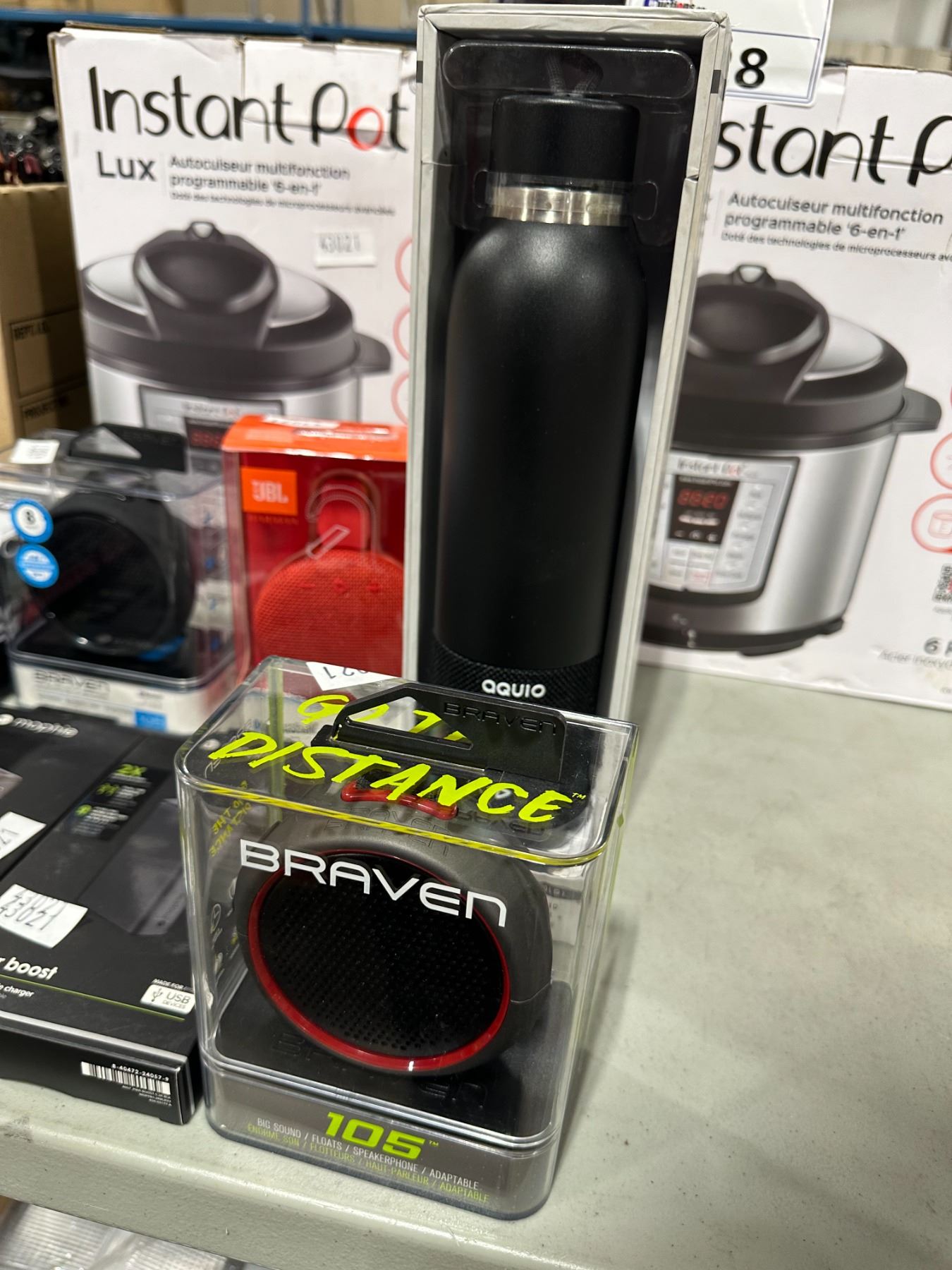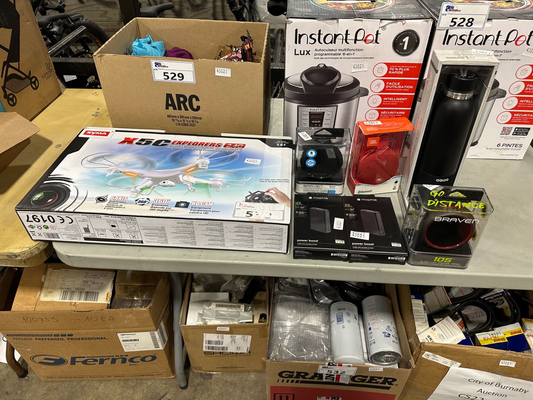 LOT OF 3 PORTABLE SPEAKERS, AQUIO PORTABLE SPEAKER/WATER BOTTLE, 2 POWER BANKS, SYMA X5C