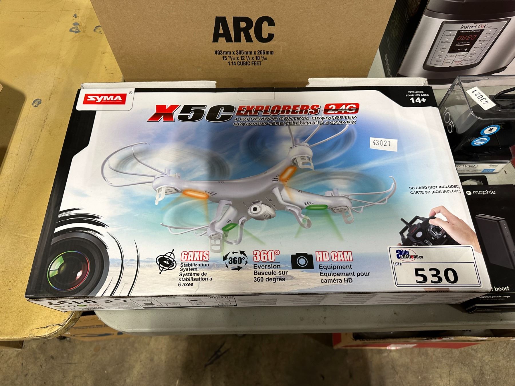 LOT OF 3 PORTABLE SPEAKERS, AQUIO PORTABLE SPEAKER/WATER BOTTLE, 2 POWER BANKS, SYMA X5C REMOTE CONTROLLED QUADCOPTER
