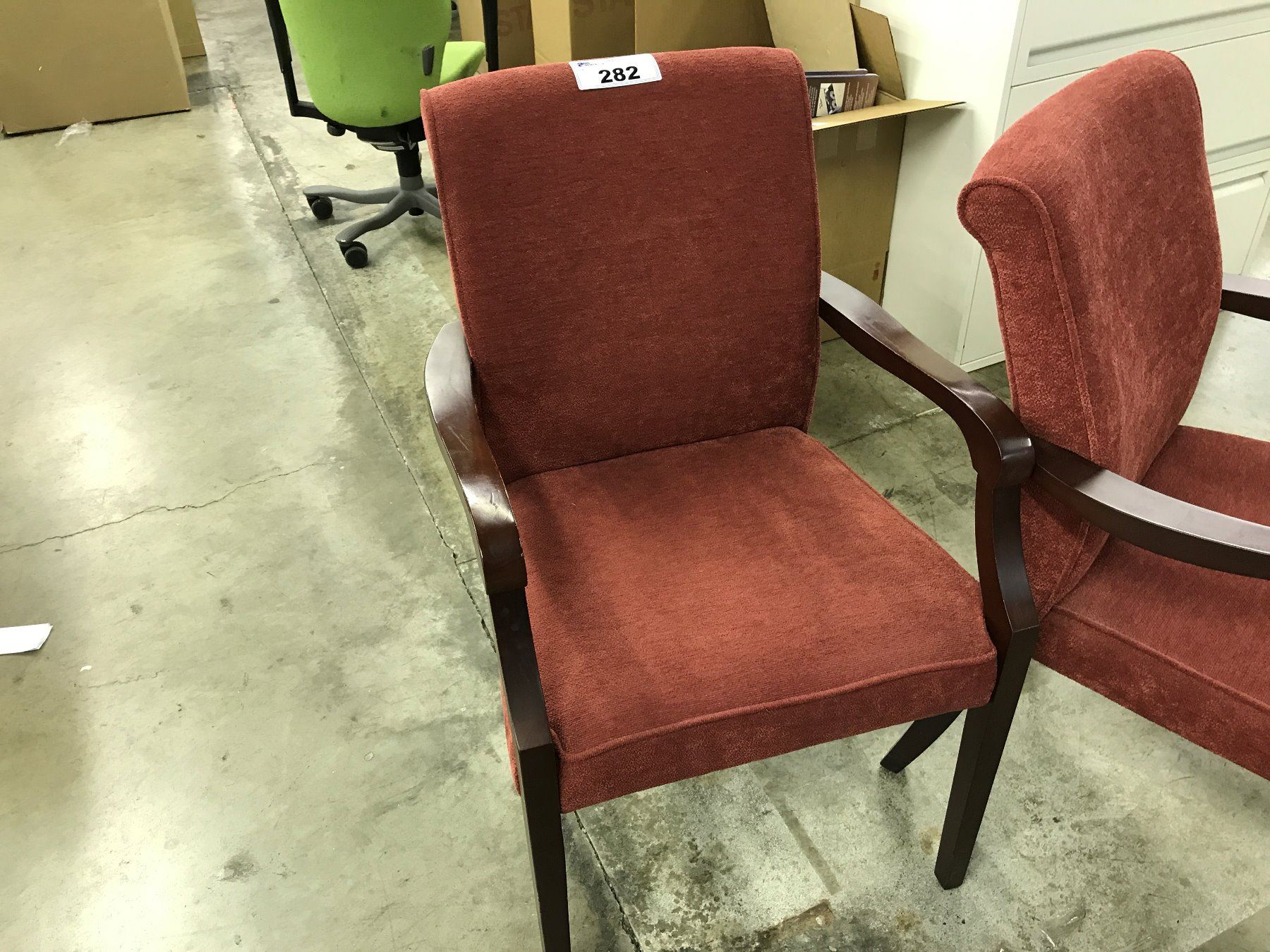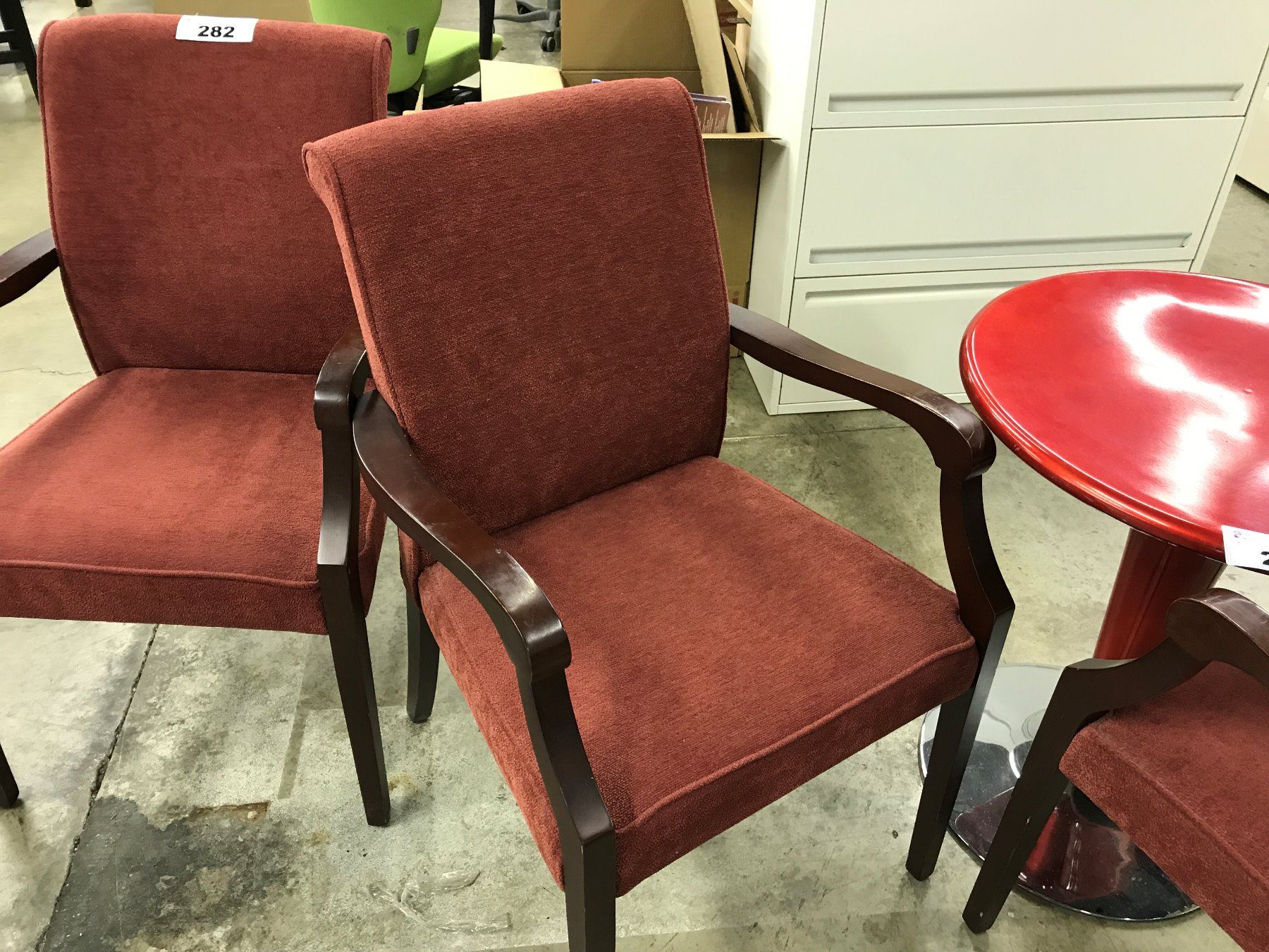 LOT OF 3 RED MAHOGANY FRAME ARM CHAIRS