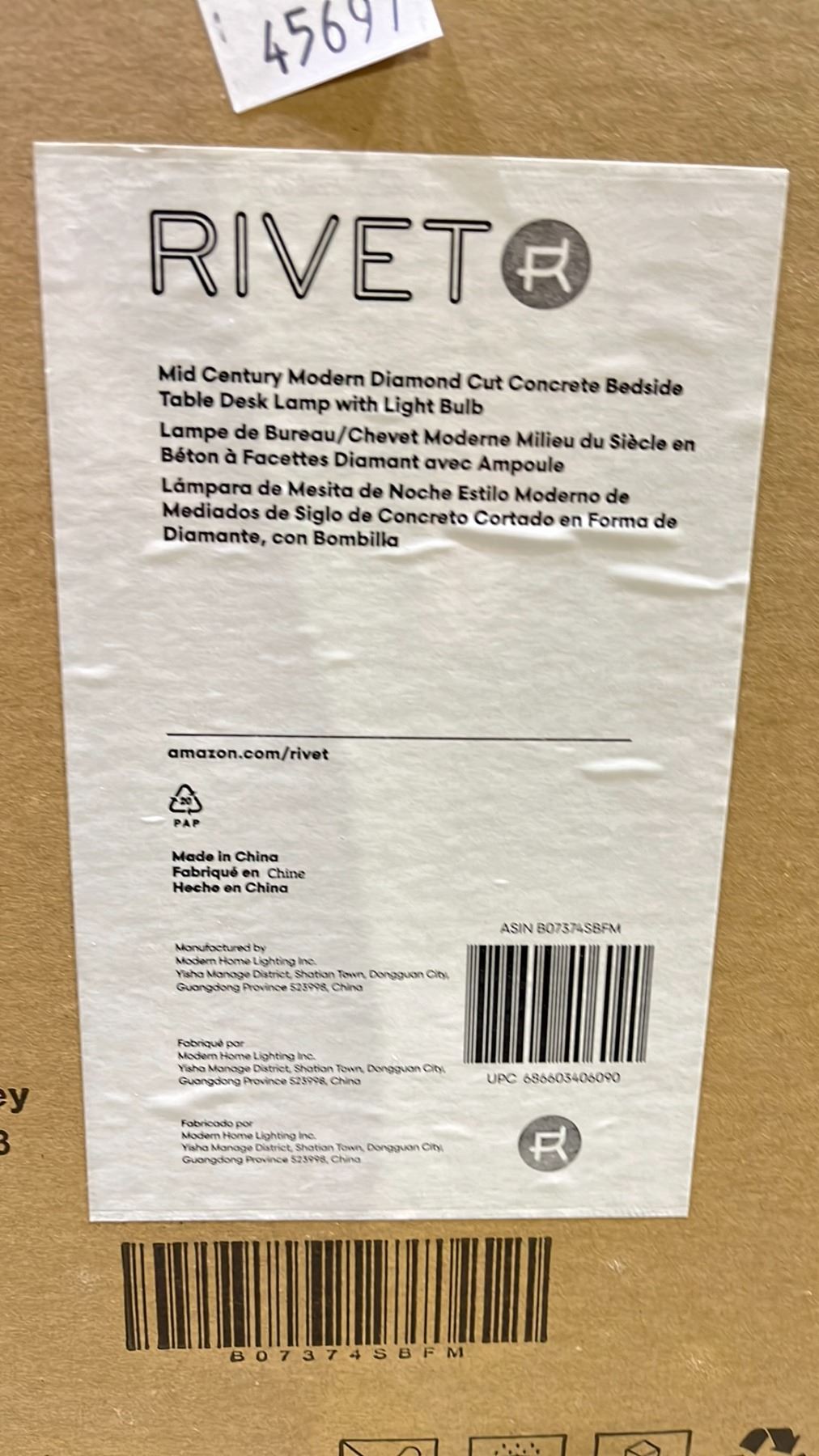 LOT OF 3 RIVET MID CENTURY MODERN DIAMOND CUT CONCRETE BEDSIDE TABLE/DESK LAMP WITH LIGHT BULBS