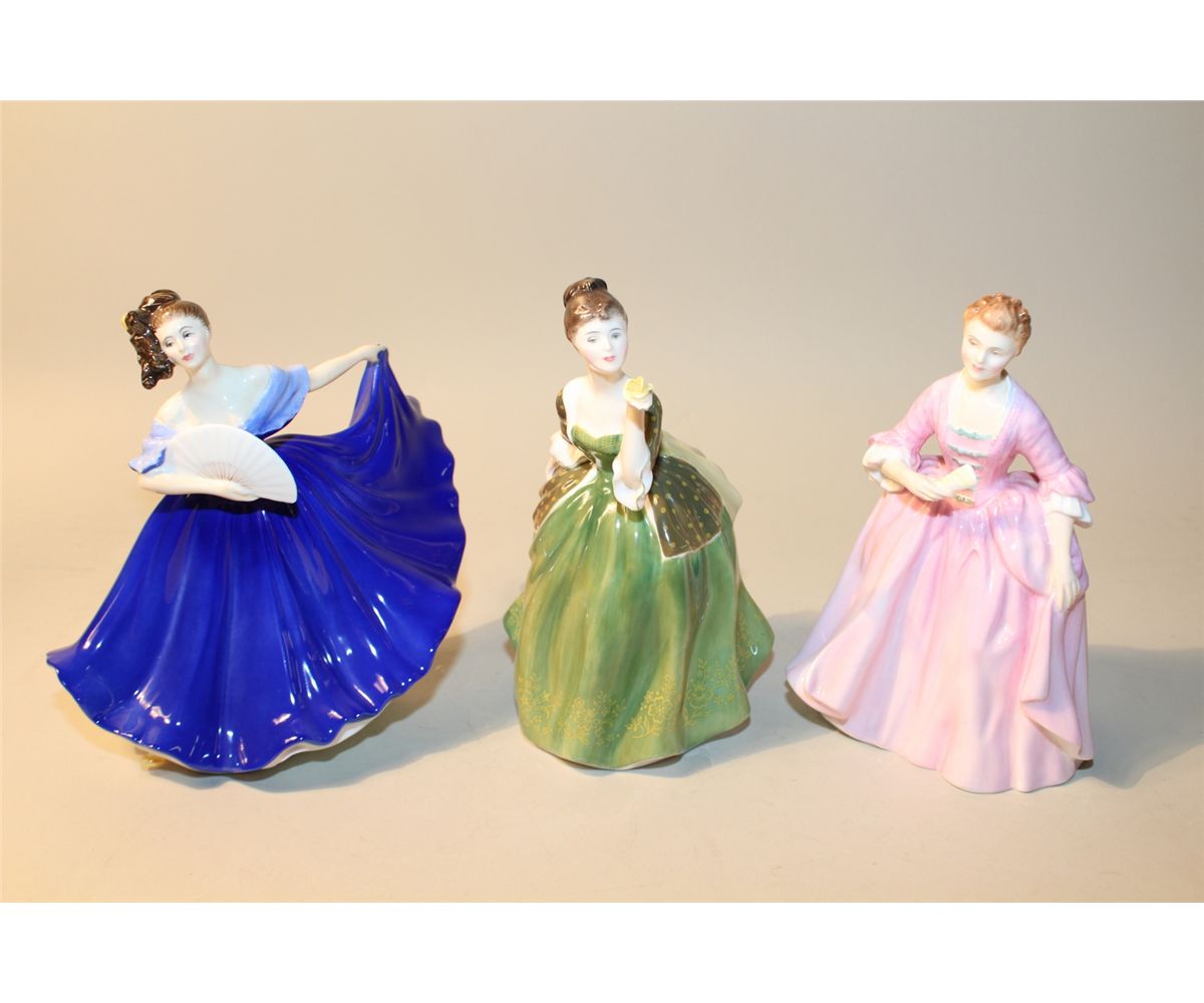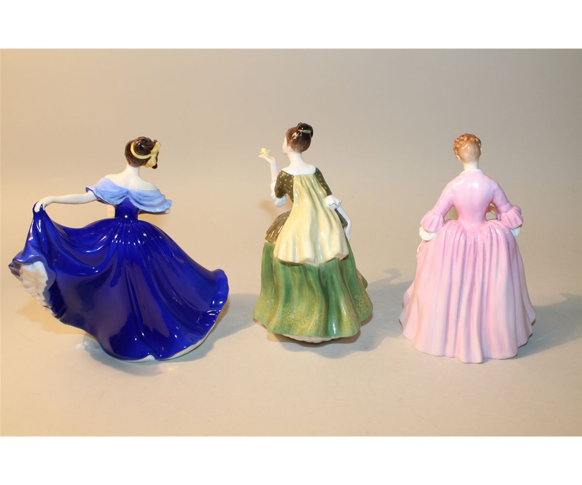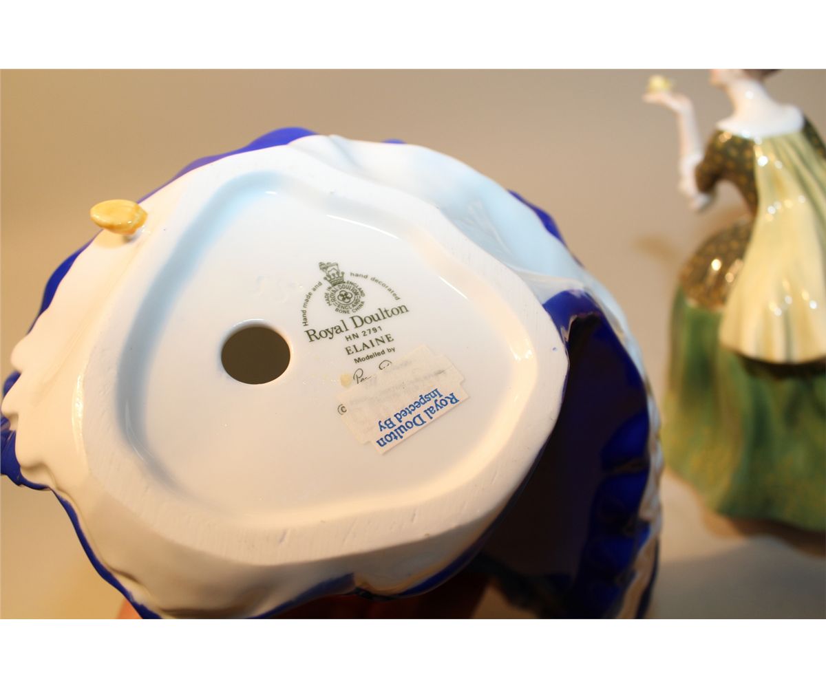 LOT OF 3 ROYAL DOULTON'S- HN2368 FLEUR, HN2791 ELAINE AND HN2209 A HOSTESS OF WILLIAMSBURG