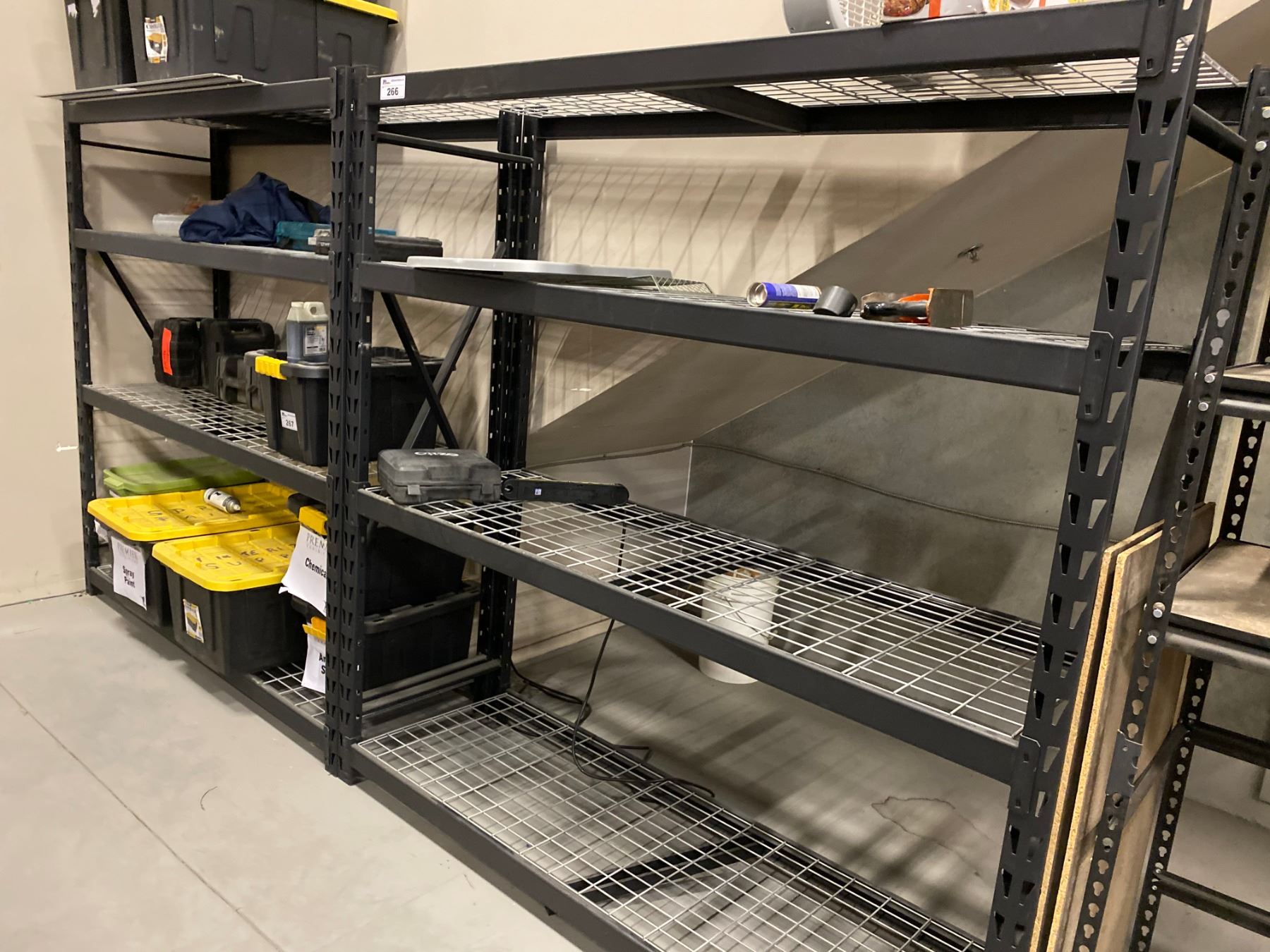 LOT OF 3 STORAGE RACKS INC. 2 X 77" WIDE X 77" TALL MED. DUTY RACKS AND 1 X 6' TALL LIGHT DUTY RACK