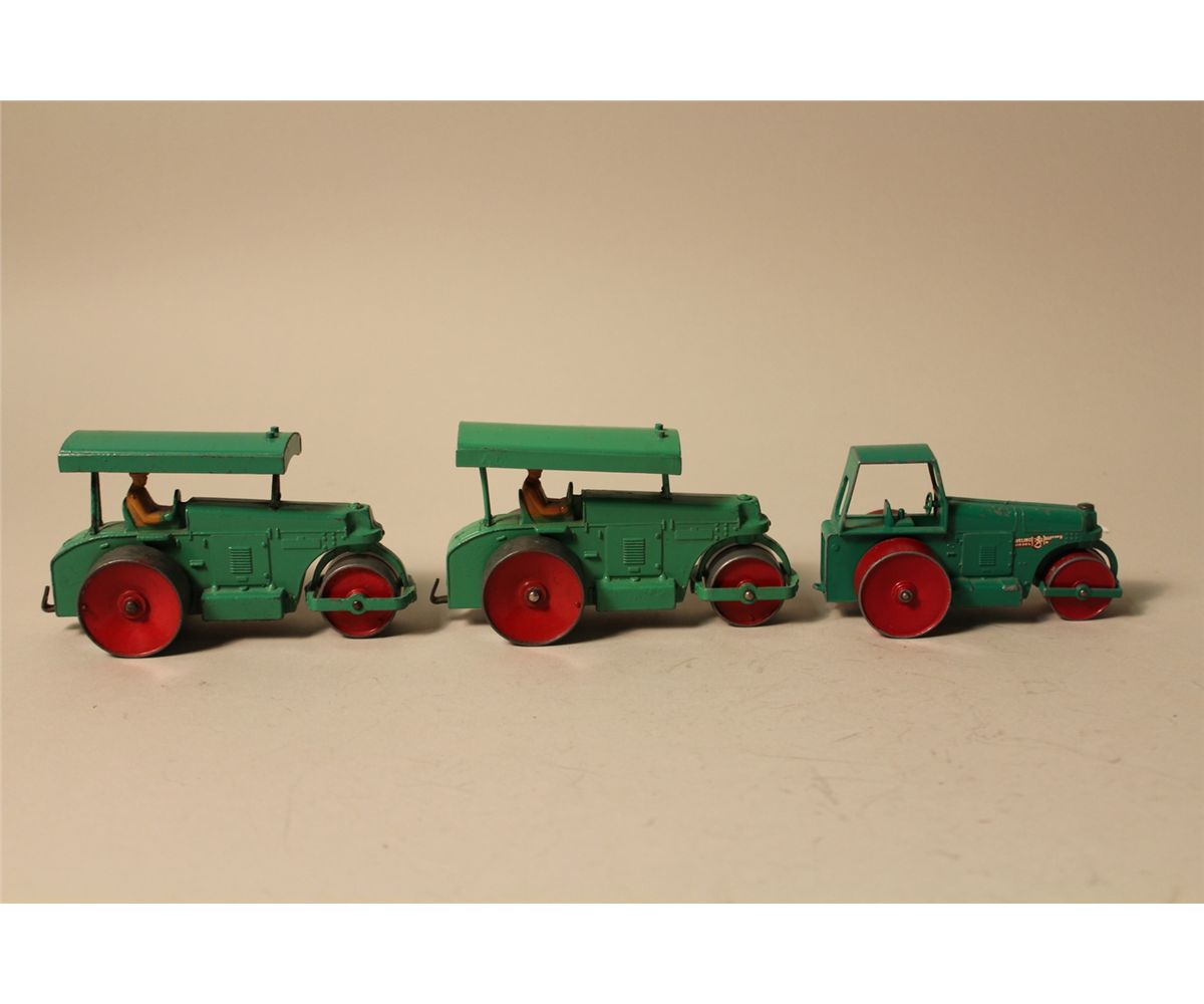 LOT OF 3 TRACTORS- DINKY NO. 251 AVELING BARFORD DIESEL ROLLER (X2) AND MATCHBOX REGULAR WHEELS NO. 1-D AVELING BARFORD ROAD ROLLER