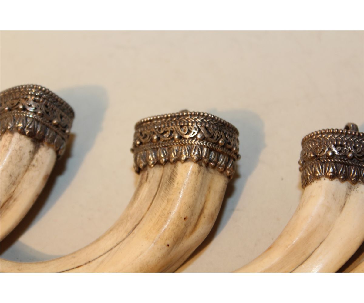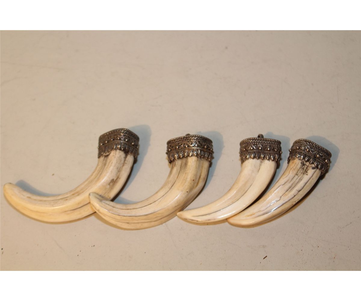 LOT OF 4 AFRICAN WARTHOG TUSK PENDANTS WITH SILVER FILIGREE