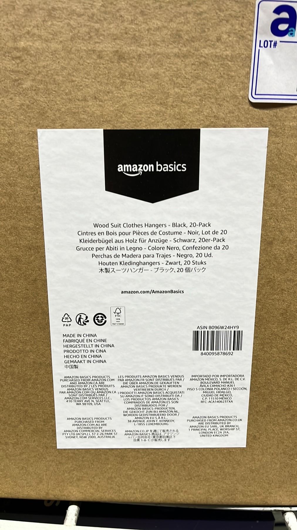 LOT OF 4 AMAZON BASICS WOOD SUIT CLOTHES HANGERS - BLACK 20 PACK