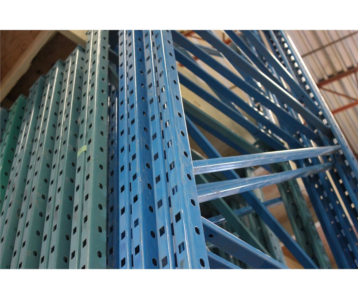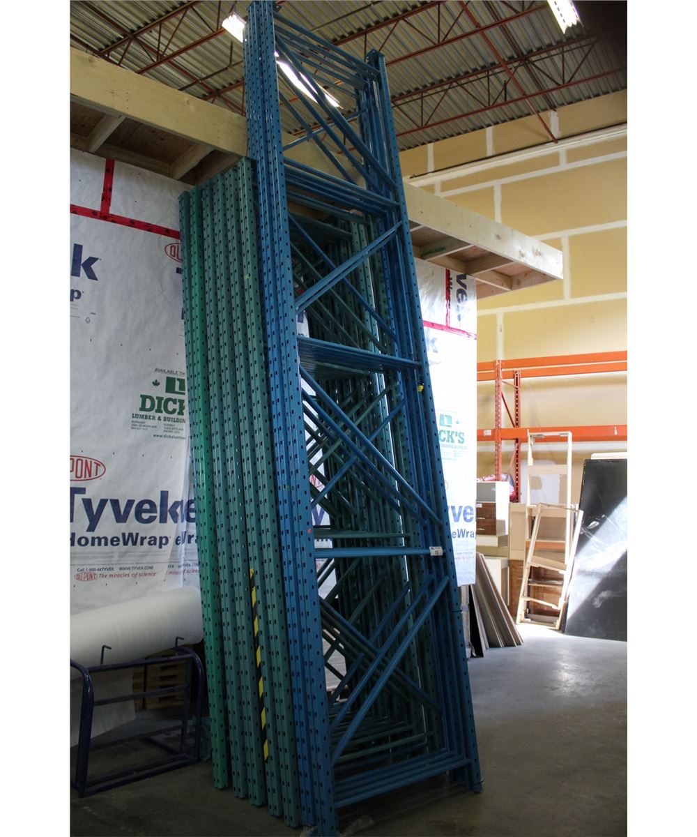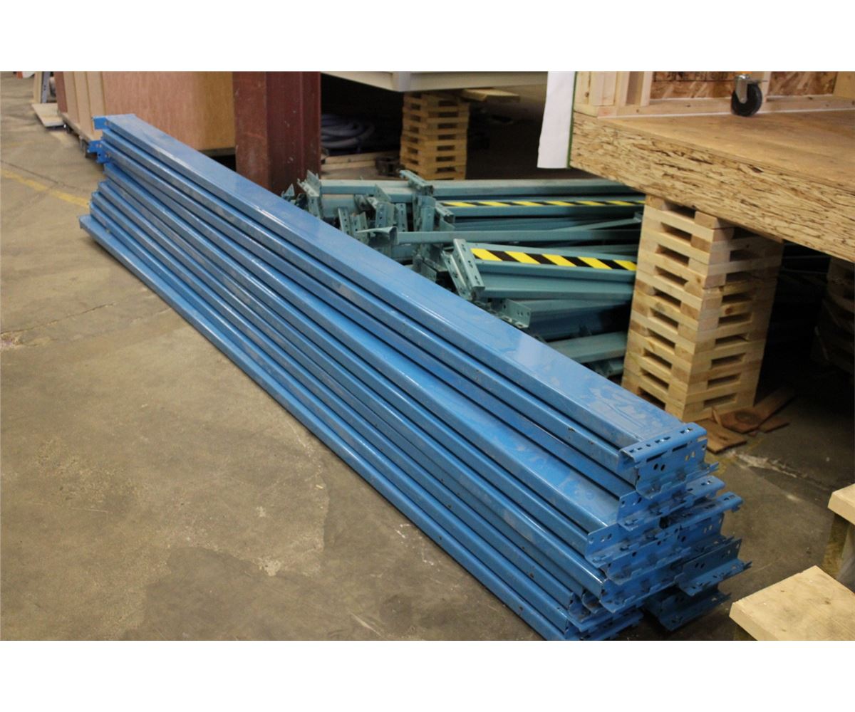 LOT OF 4 BAYS OF PALLET RACKING INC. 5 16' UPRIGHTS AND 18 12' CROSSBARS