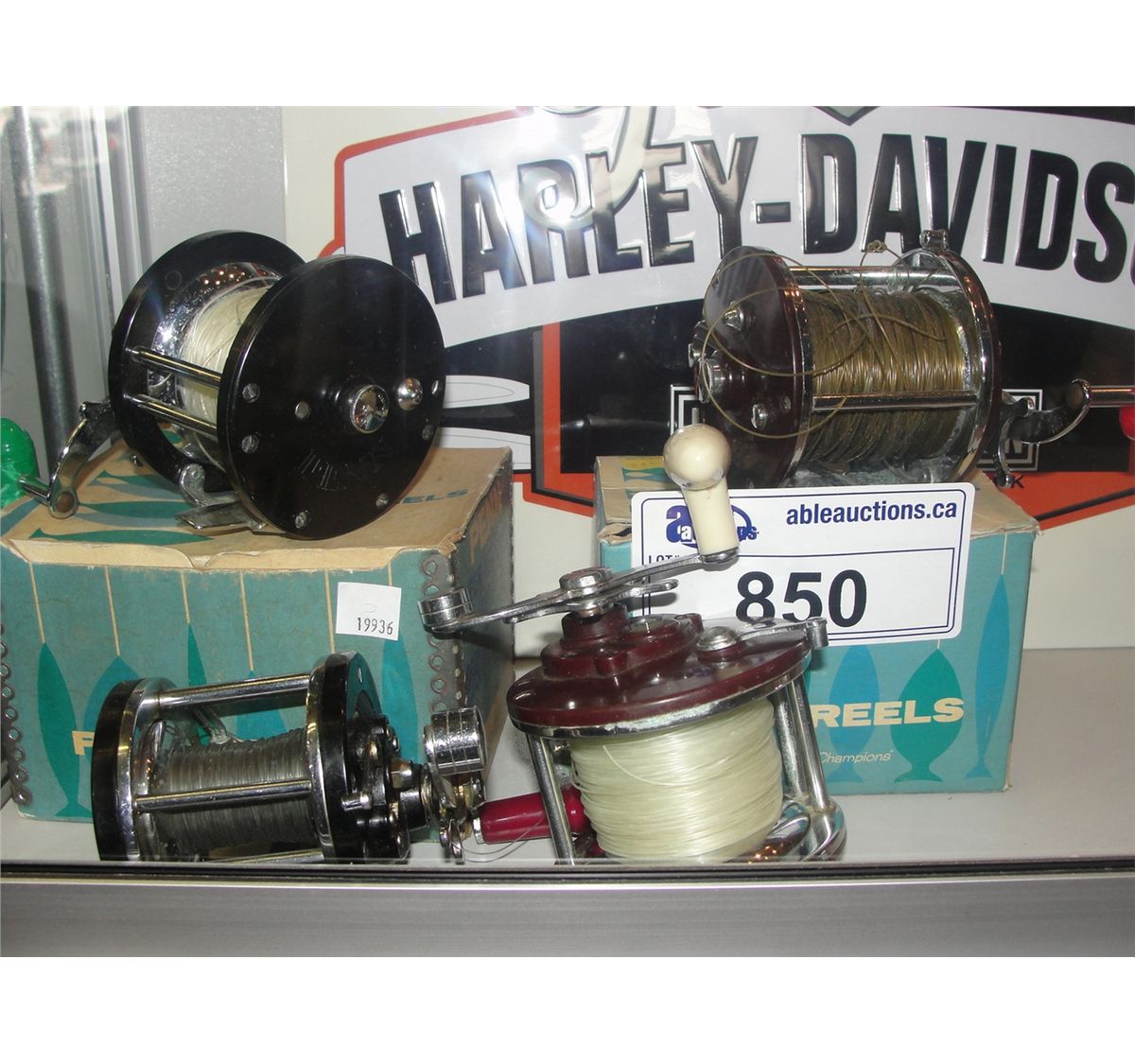 LOT OF 4 DEEP SEA LEVEL WIND FISHING REELS; 2 PENN AND 2 JAPAN