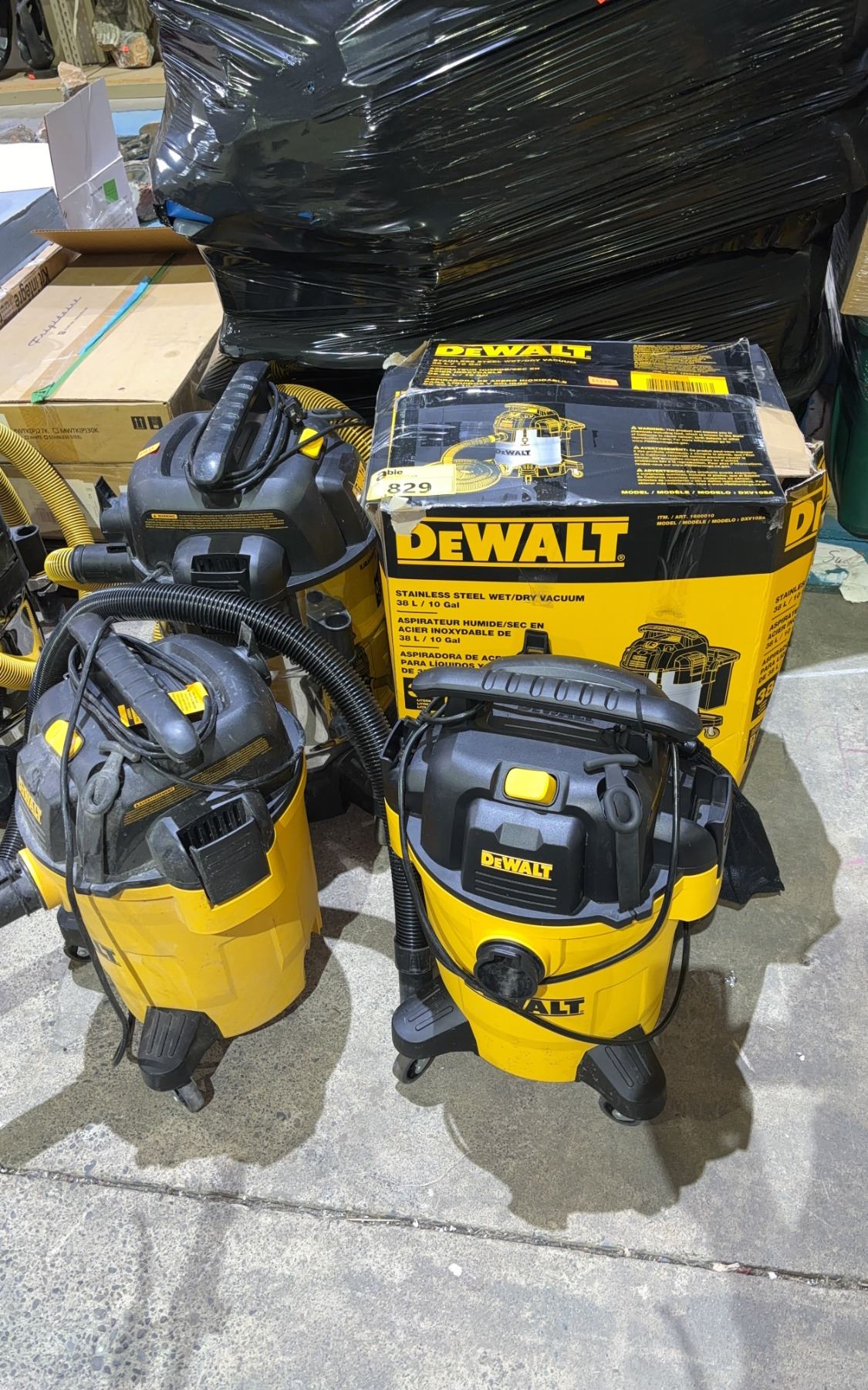LOT OF 4 DEWALT SHOP VACUUMS *UNKNOWN WORKING CONDITION*
