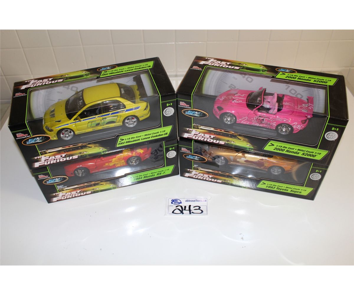 LOT OF 4 DIFFERENT 1:18 SCALE THE FAST AND THE FURIOUS DIE CAST MODELS NEW IN BOX