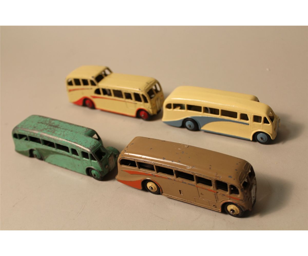 LOT OF 4 DINKY BUSES- OBSERVATION, LUXURY AND MORE