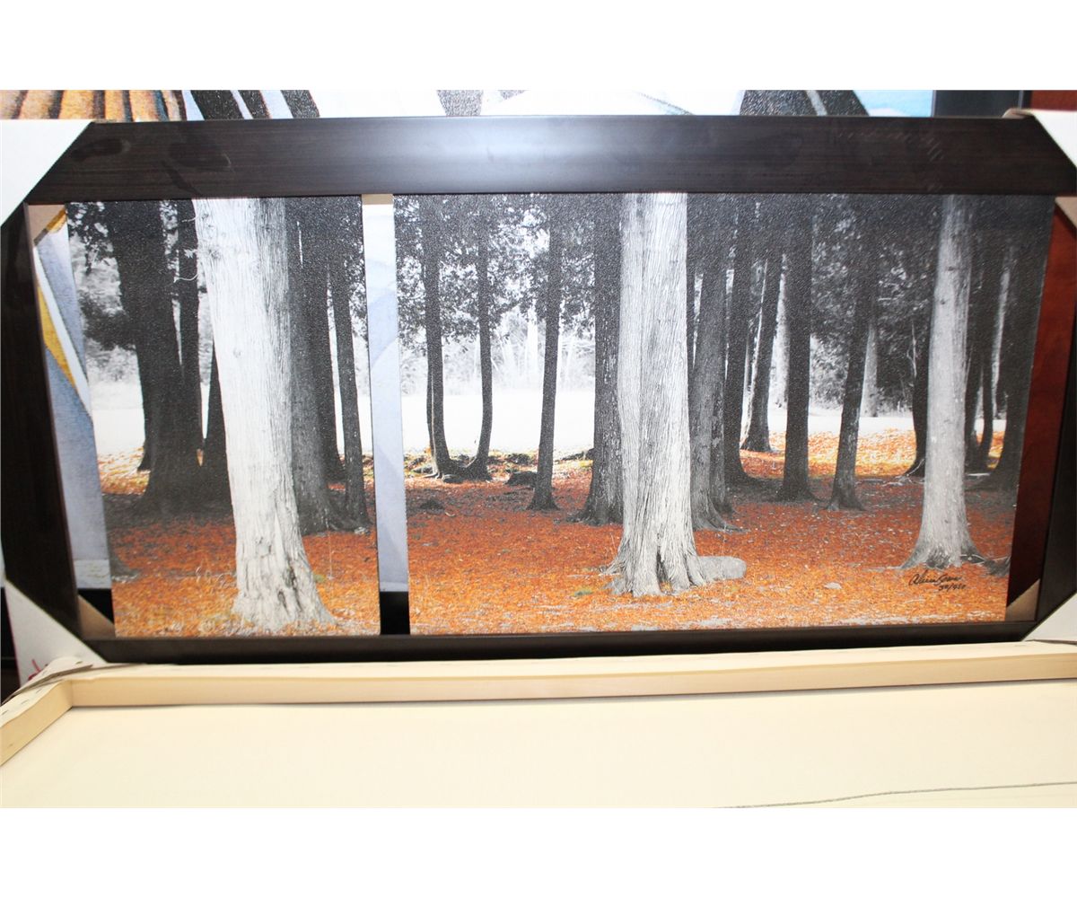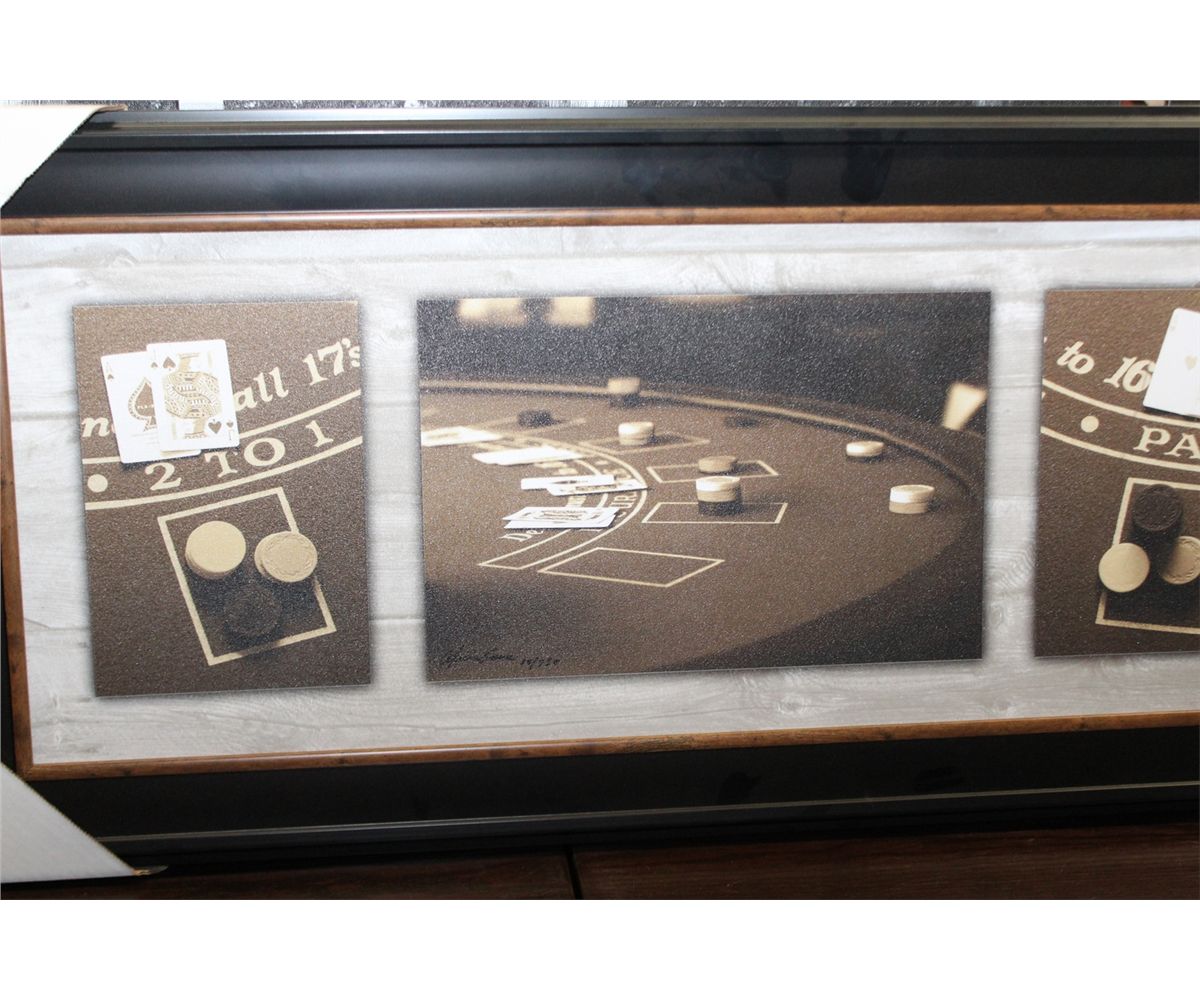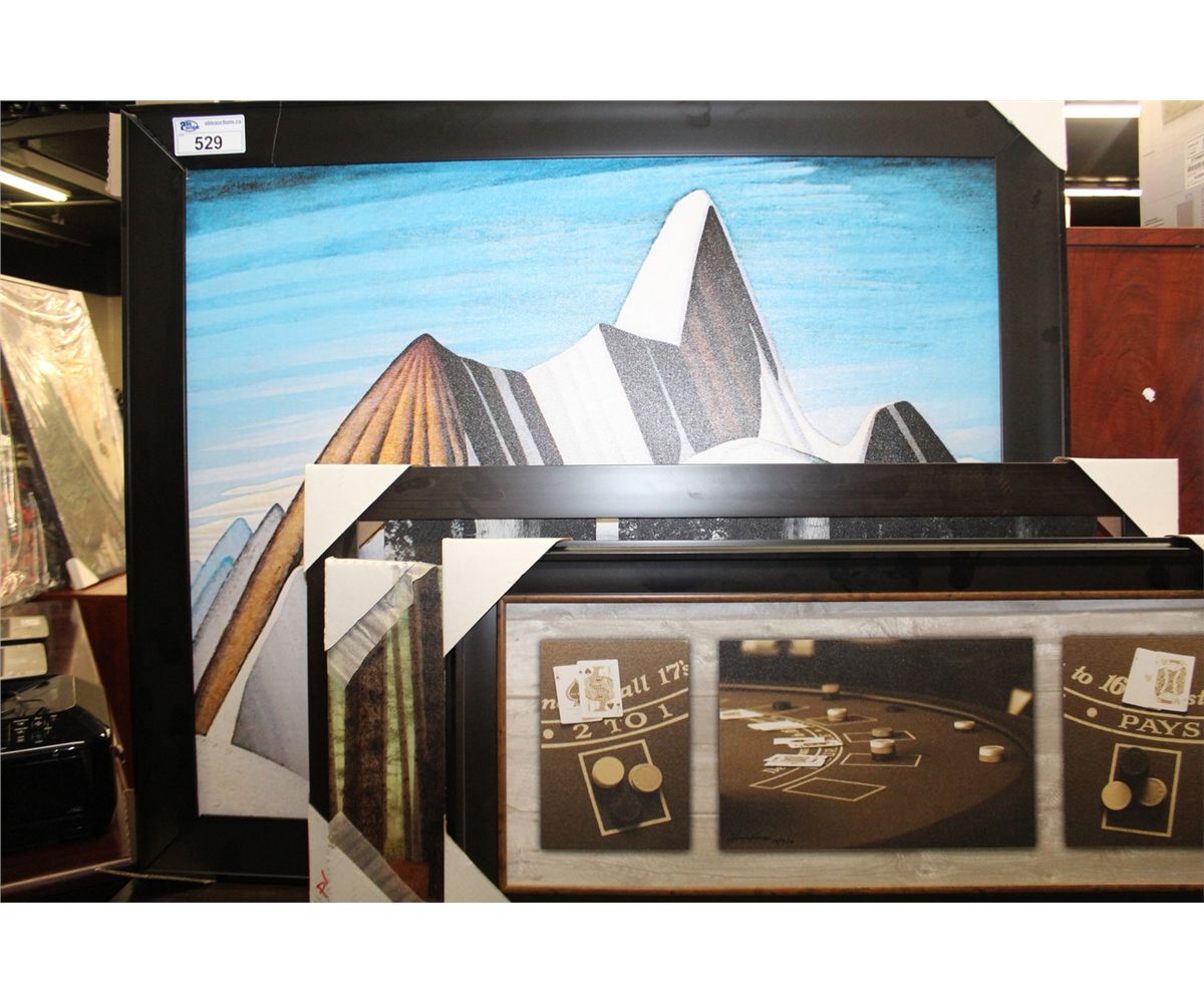 LOT OF 4 FRAMED PRINTS, LARGE PRINT HAS A CRACKED FRAME