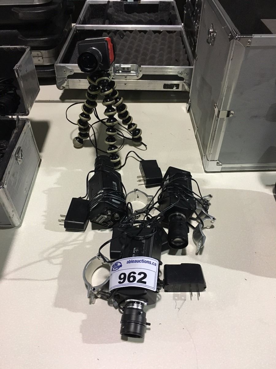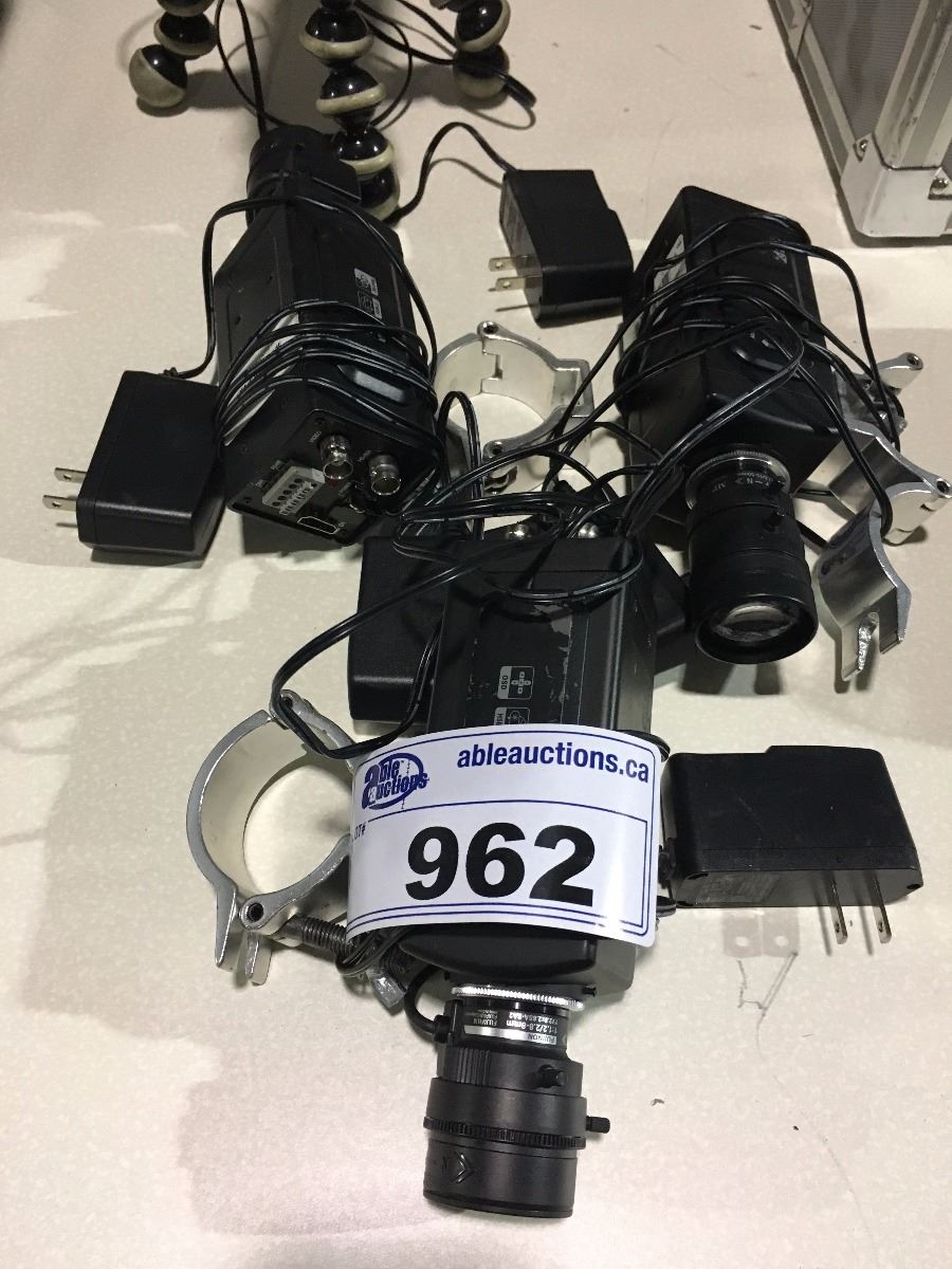 LOT OF 4 HD STAGE CAMERAS WITH POWER ADAPTER AND TRIPOD