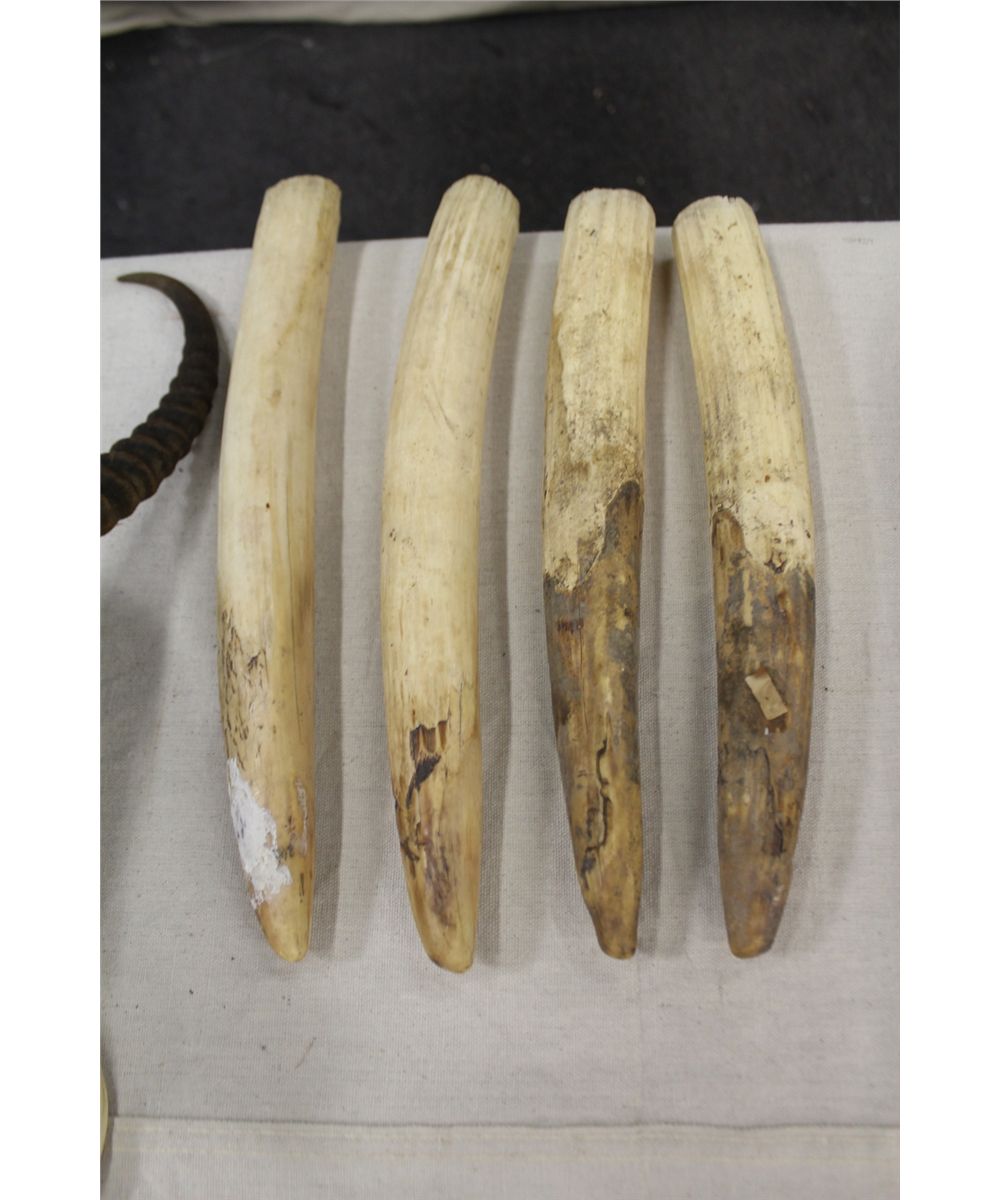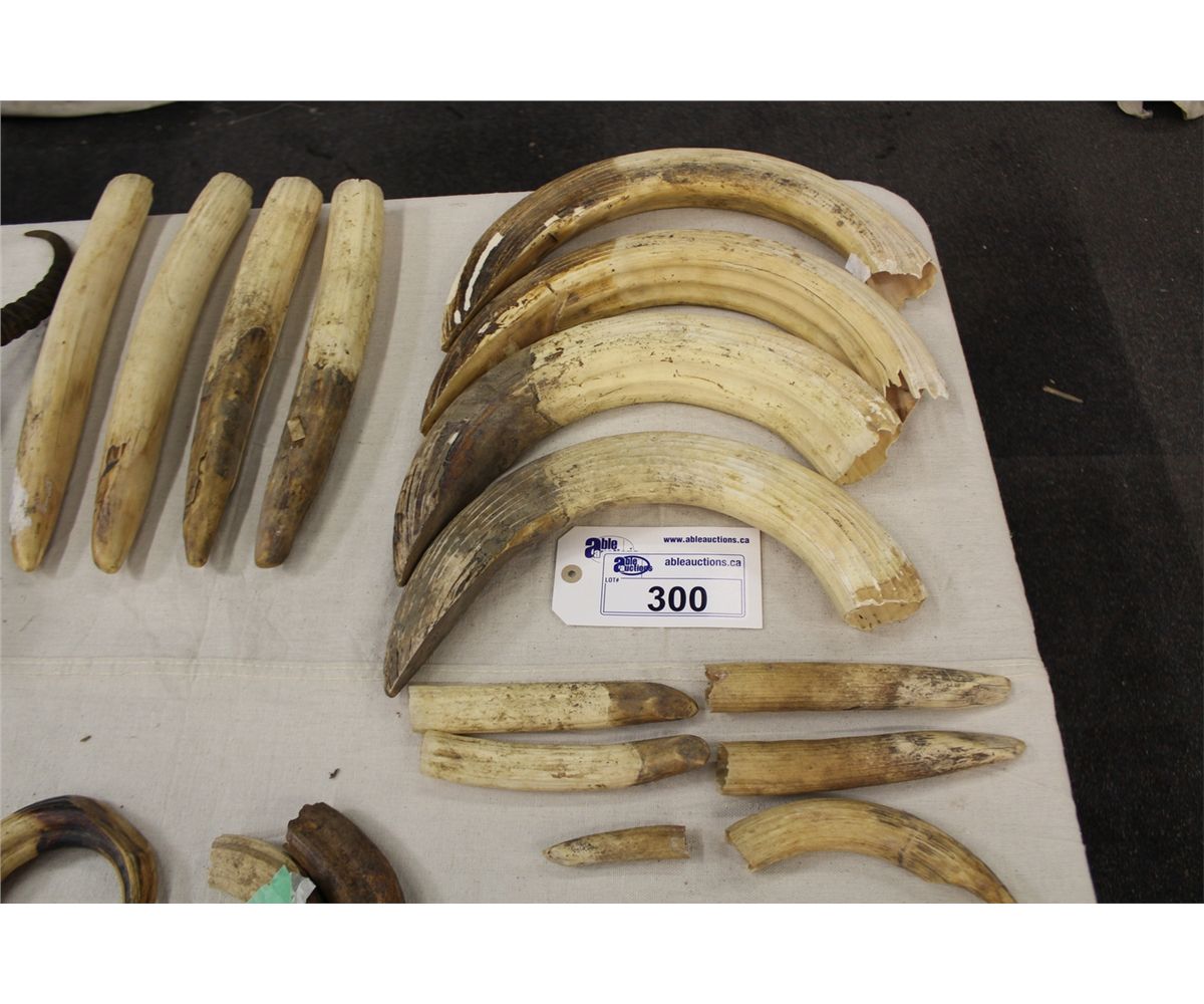 LOT OF 4 HIPPO TUSKS AND 6 HIPPO TEETH