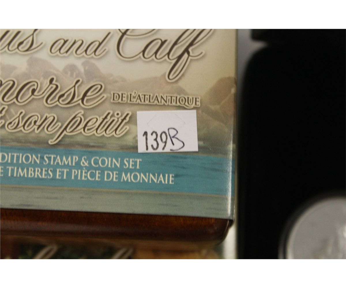 LOT OF 4- LIMITED EDITION CANADIAN STAMP AND COIN SETS INCL. WALRUS AND CALF, DEER AND FAWN, THE GREAT GRIZZLY AND THE FALCON