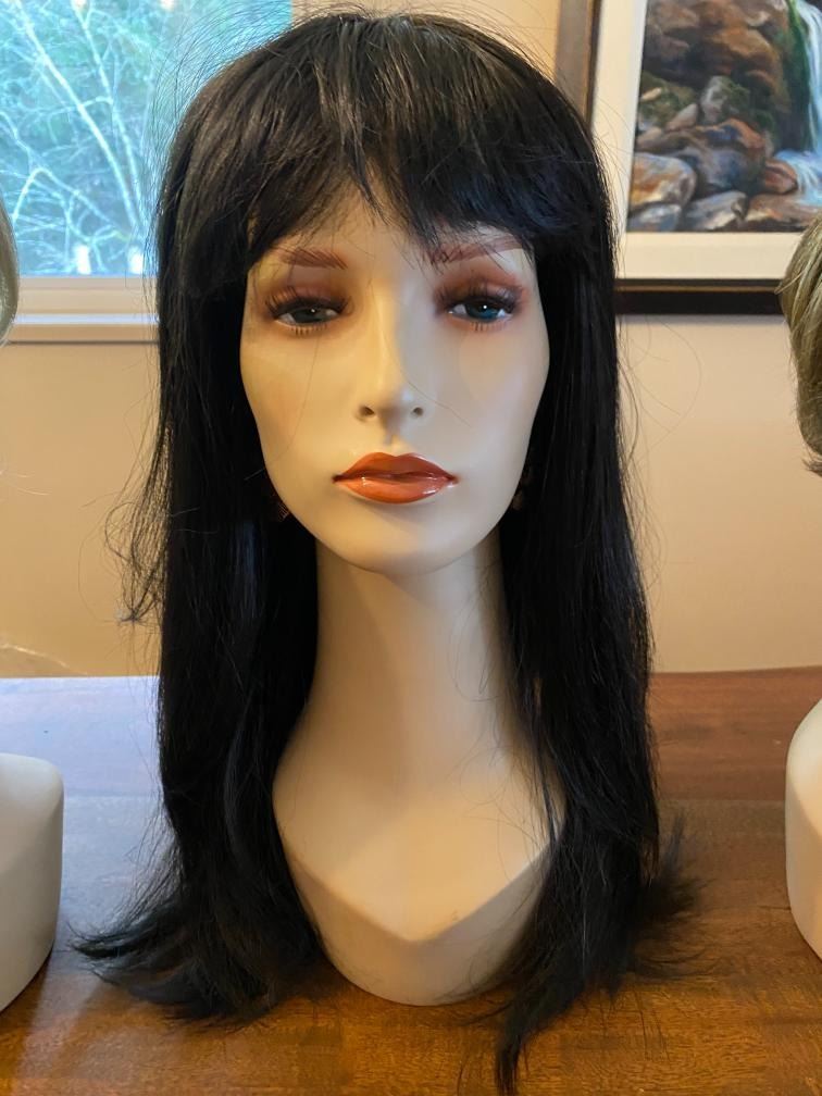 LOT OF 4 MODACRYLIC FIBRE WIGS, BLONDE, BLACK & BRUNETTE TONES