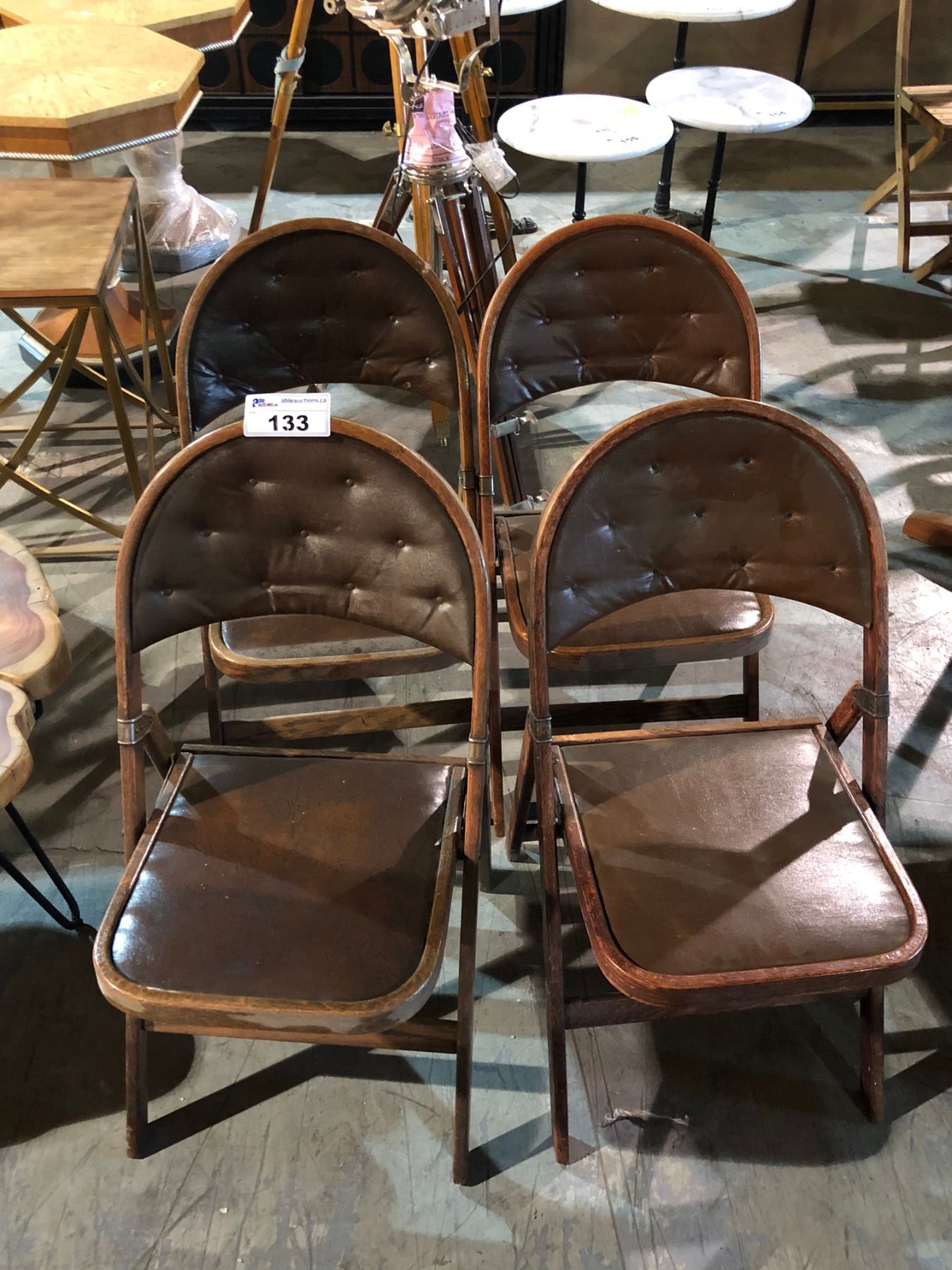 LOT OF 4 OAK AND LEATHER ANTIQUE FOLDING CHAIRS