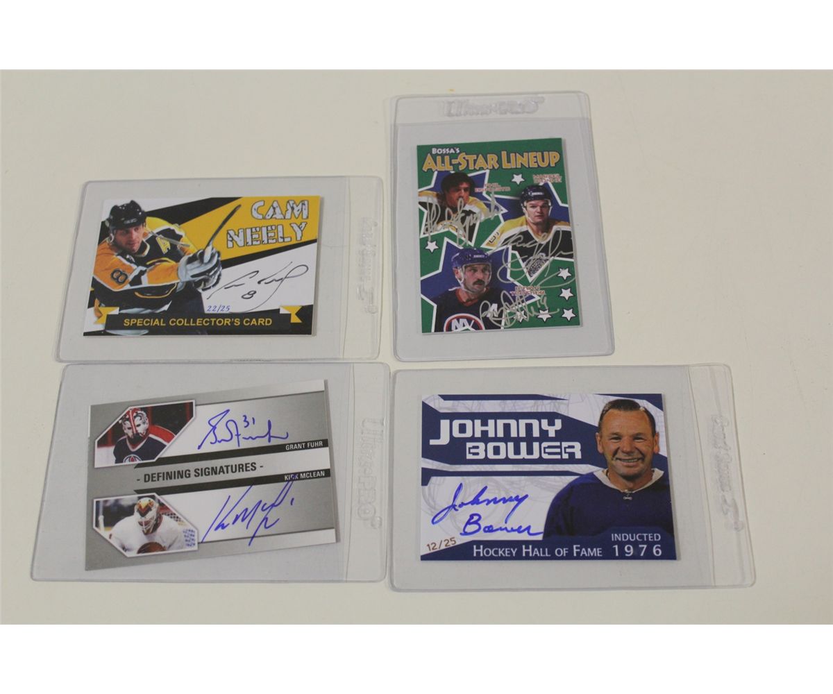 LOT OF 4 SIGNATURE CARDS INCLUDES: GRANT FUHR & KIRK MCLEAN- JOHNNY BOWER, CAM NEELY AND ALL-STAR LINEUP PHIL ESPOSITO, MARCEL DIONNE & BRYAN TROTTIER