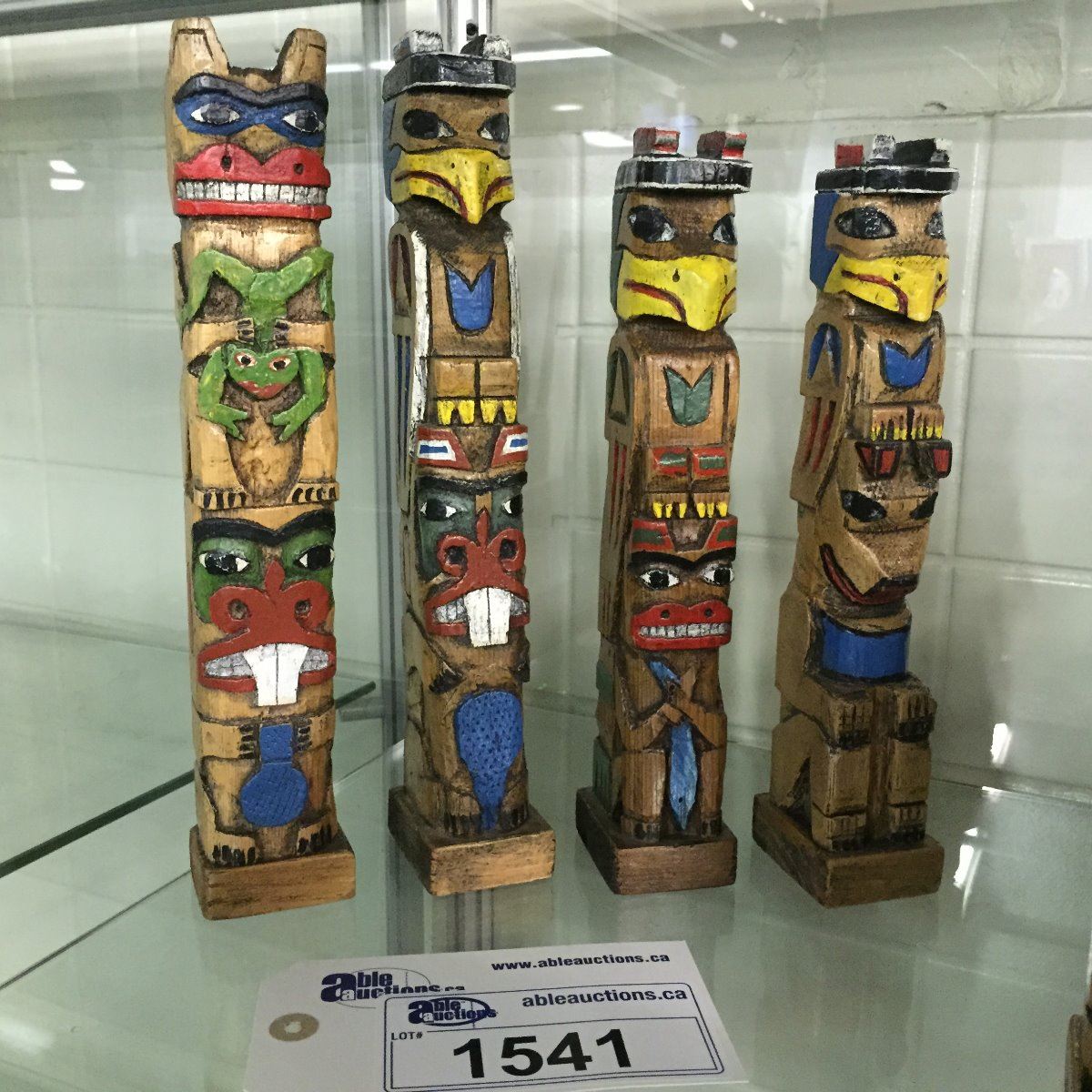 LOT OF 4 TOTEMS- 10-12" HIGH
